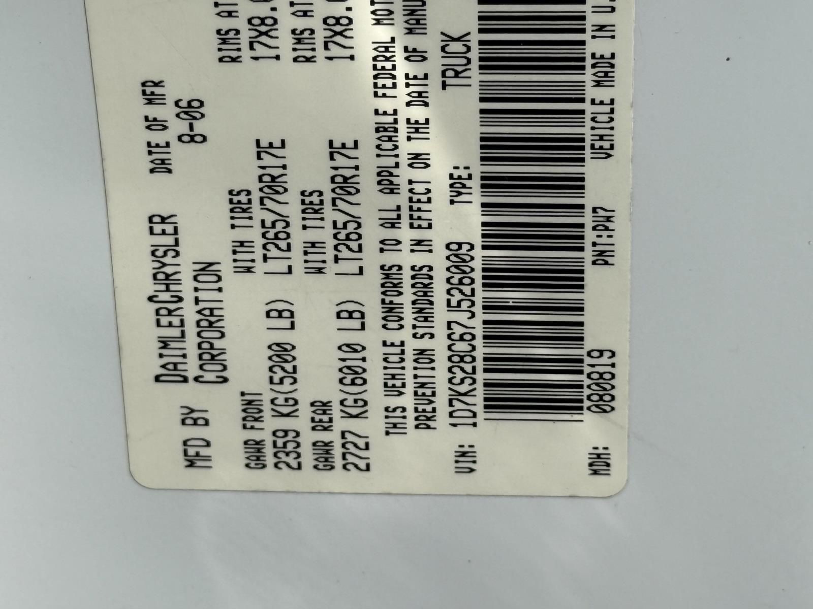 Vin: 1D7KS28C67J526009