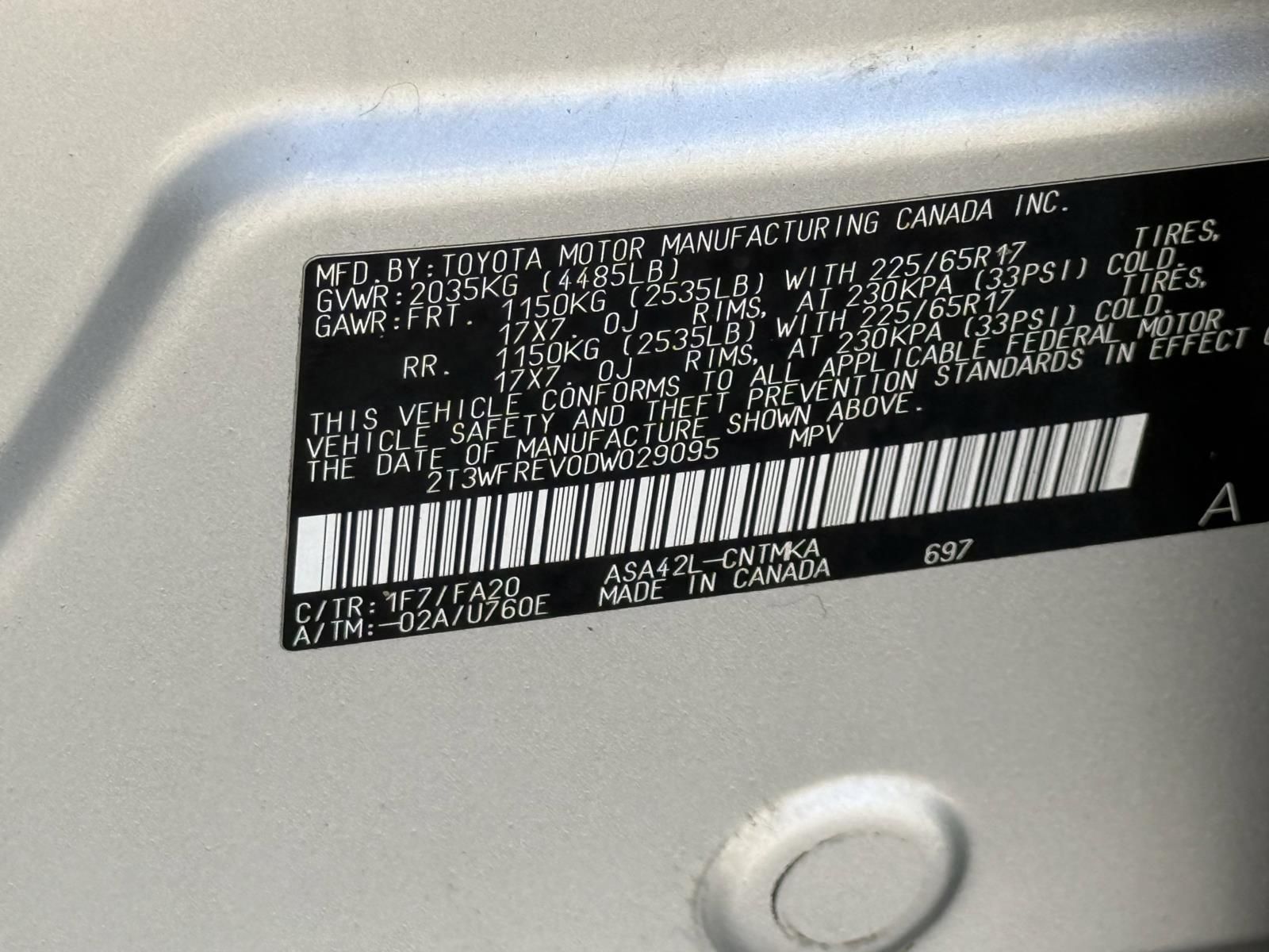 Vin: 2T3WFREV0DW029095