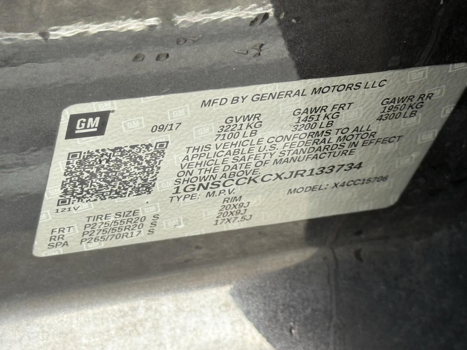 Vin: 1GNSCCKCXJR133734