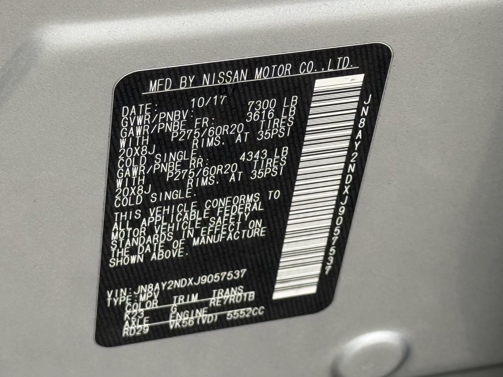 Vin: JN8AY2NDXJ9057537