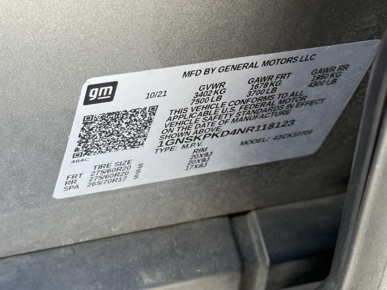 Vin: 1GNSKPKD4NR118123
