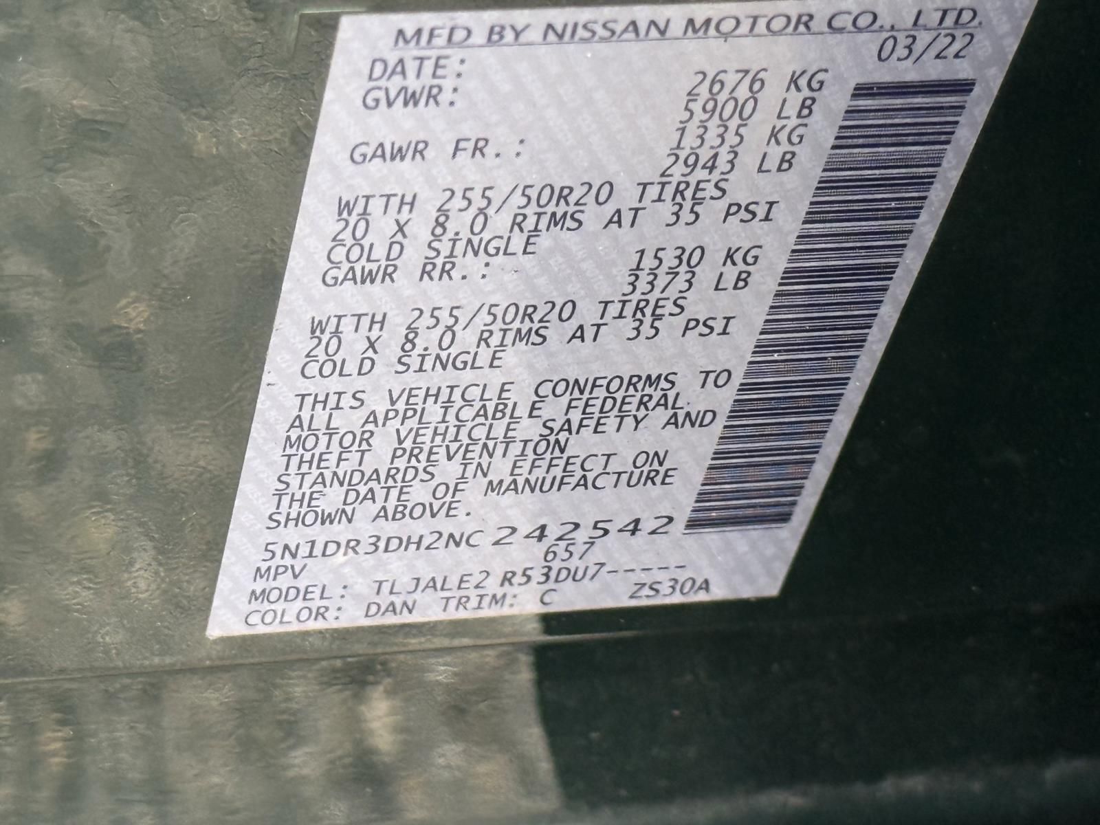 Vin: 5N1DR3DH2NC242542