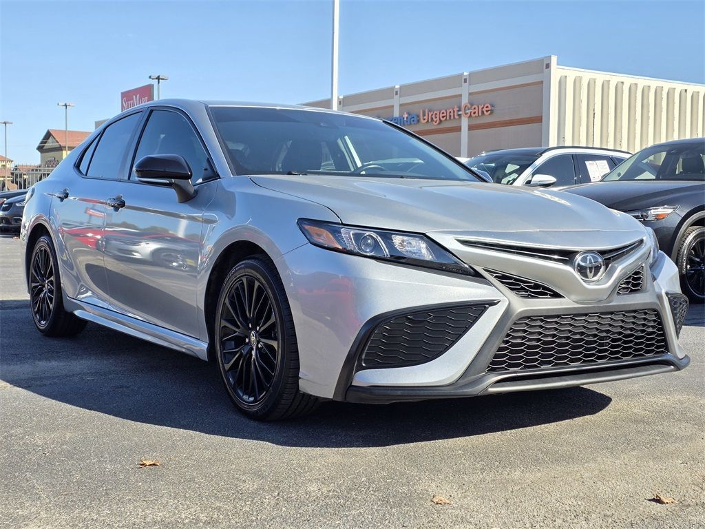 Silver 2022 Toyota Camry SE Nightshade FWD 8-Speed Automatic 2.5L I4 DOHC 16V Cloth, ABS brakes, Active Cruise Control, Alloy wheels, Electronic Stability Control, Front dual zone A/C, Heated door mirrors, Illuminated entry, Low tire pressure warning, Remote keyless entry, Traction control.Odometer is 43373 miles below market average! 28/39 City/Highway MPGBuy with confidence! All of our vehicles are put through a rigorous inspection and are fully reconditioned.