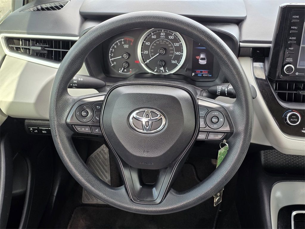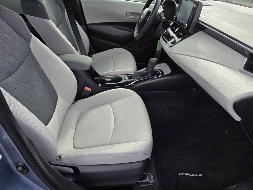 At Mac Haik, we believe in customer satisfaction and try to make it our mission that each and every shopper is happy with our service. Drivers in Spring, Cypress, Tomball, Humble, The Woodlands, Conroe, New Caney, Cleveland, Jersey Village, Magnolia, Baytown, Pasadena and all Houston surrounding areas have made the drive to Mac Haik Dodge Chrysler Jeep Ram again and again. Visit us now and experience why Mac Haik Dodge Chrysler Jeep Ram is Houston's most awarded dealership of all time! Buy with confidence! All of our vehicles are put through a rigorous inspection and are fully reconditioned. Odometer is 2802 miles below market average!Celestite w/Black Sand Pearl Roof 2022 Toyota Corolla LE FWD CVT 1.8L I4 DOHC 16VThis 2022 Toyota Corolla LE in Celestite w/Black Sand Pearl Roof includes the following features: 1.8L I4 DOHC 16V CVT FWD 4-Wheel Disc Brakes, 6 Speakers, ABS brakes, Air Conditioning, AM/FM radio: SiriusXM, Apple CarPlay/Android Auto, Auto High-beam Headlights, Automatic temperature control, Brake assist, Bumpers: body-color, Delay-off headlights, Driver door bin, Driver vanity mirror, Dual front impact airbags, Dual front side impact airbags, Electronic Stability Control, Emergency communication system: Safety Connect with 1-year trial, Exterior Parking Camera Rear, Four wheel independent suspension, Front anti-roll bar, Front Bucket Seats, Front Center Armrest, Front reading lights, Fully automatic headlights, Illuminated entry, Knee airbag, Low tire pressure warning, Occupant sensing airbag, Outside temperature display, Overhead airbag, Panic alarm, Passenger door bin, Passenger vanity mirror, Power door mirrors, Power steering, Power windows, Premium Fabric Seat Trim, Radio data system, Radio: Audio, Rear anti-roll bar, Rear seat center armrest, Rear side impact airbag, Rear window defroster, Remote keyless entry, Security system, Speed control, Split folding rear seat, Steering wheel mounted audio controls, Tachometer, Telescoping steering wheel, Tilt steering wheel, Traction control, Trip computer, Variably intermittent wipers, and Wheels: 16" Wide Vent Steel. Recent Arrival! 30/38 City/Highway MPG