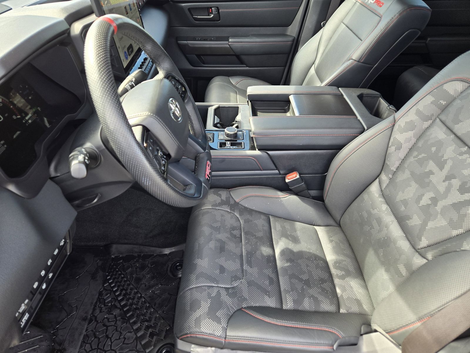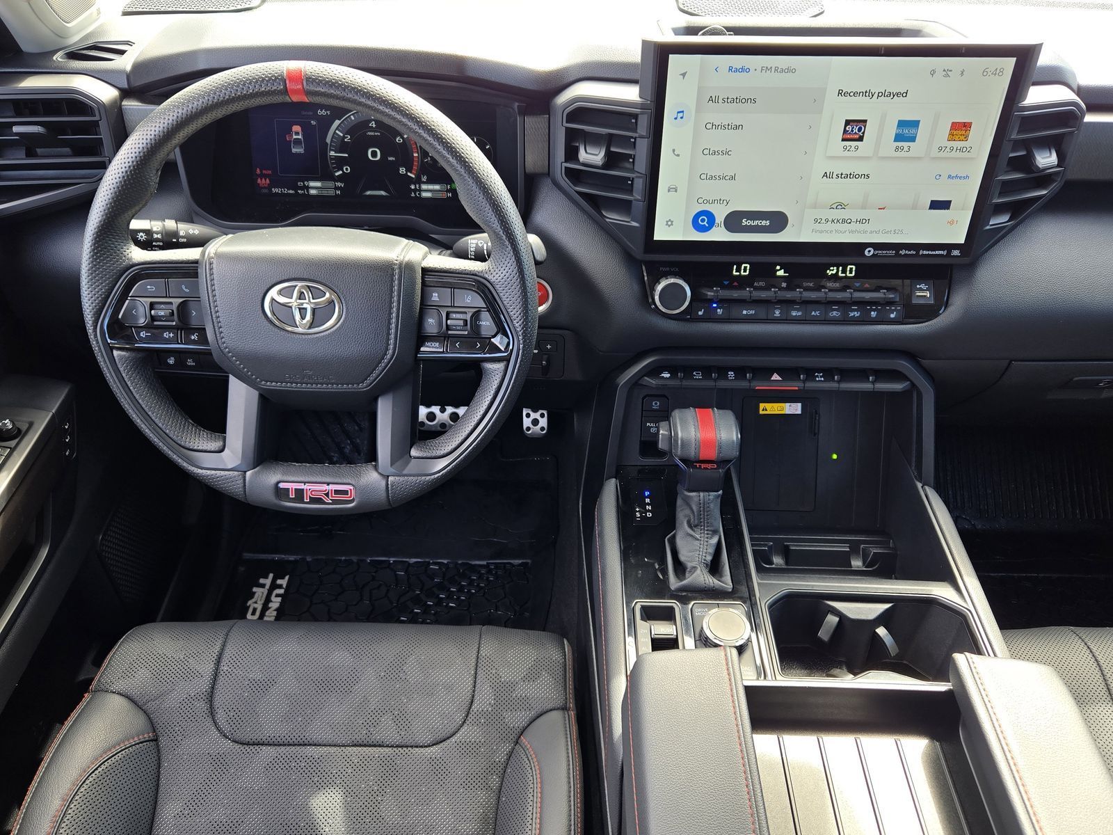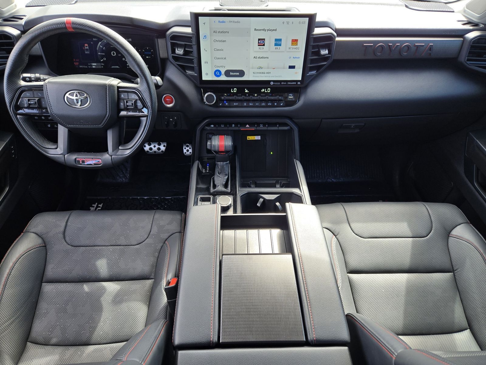 Why Buy From Mac Haik Ford Houston-- At Mac Haik Ford Houston, a family-owned and operated dealership proudly serving Houston for over 40 years, we make cars buy simple, transparent, and stress-free. • Transparent Pricing – No hidden fees, just honest, upfront pricing • Competitive Deals – Priced to compete with the best in the Texas market • Easy Buying Process – Shop, get pre-approved, and value your trade online • Huge Selection – New and Pre-owned and Certified vehicles ready to go • Customer First – Friendly, no-pressure experience • Service You Can Count On – We’re here long after the sale. Vehicle Specs: Towing Technology Package, TRD Pro Package (400W/120V AC Rear Seat & Bed Power Supply, Black Dual Exhaust Tips w/Debossed TRD Pro Logo, Color-Keyed Outside Mirrors, Front & Rear Mud Guards, LED Lightbar w/Fog & Marker Lights, Multi-Terrain Back Monitor, Power Panoramic Roof, Qi-Compatible Wireless Smartphone Charger, Smoked-Finish Premium LED Headlights & DRL, and TRD Pro Heated Leather-Trimmed Steering Wheel), Tundra Hybrid TRD Pro, 4D Crew Cab, 3.4L V6, 10-Speed Automatic, 4WD, Midnight Black Metallic, Black w/Leather Seat Trim, 12 Speakers, 3.31 Axle Ratio, 4-Wheel Disc Brakes, ABS brakes, Air Conditioning, Alloy wheels, AM/FM radio: SiriusXM, Apple CarPlay/Android Auto, Auto High-beam Headlights, Auto-dimming door mirrors, Auto-dimming Rear-View mirror, Automatic temperature control, Brake assist, Bumpers: body-color, Delay-off headlights, Driver door bin, Driver vanity mirror, Dual front impact airbags, Dual front side impact airbags, Electronic Stability Control, Emergency communication system: Safety Connect with 1-year trial, Front anti-roll bar, Front Bucket Seats, Front Center Armrest, Front dual zone A/C, Front fog lights, Front reading lights, Front wheel independent suspension, Fully automatic headlights, Garage door transmitter: HomeLink, Heated & Ventilated Front Bucket Seats, Heated door mirrors, Heated front seats, Heated steering wheel, Illuminated entry, Knee airbag, Leather Shift Knob, Low tire pressure warning, Memory seat, Navigation System, Occupant sensing airbag, Outside temperature display, Overhead airbag, Overhead console, Panic alarm, Passenger door bin, Passenger vanity mirror, Power door mirrors, Power driver seat, Power moonroof, Power passenger seat, Power steering, Power windows, Radio data system, Radio: Audio Plus, Rear reading lights, Rear seat center armrest, Rear step bumper, Rear window defroster, Remote keyless entry, Security system, SofTex Seat Trim, Speed control, Speed-sensing steering, Split folding rear seat, Sport steering wheel, Steering wheel mounted audio controls, Tachometer, Telescoping steering wheel, Tilt steering wheel, Traction control, Trip computer, Turn signal indicator mirrors, Variably intermittent wipers, Ventilated front seats, Voltmeter, and Wheels: 18" x 8" Black BBS Forged Aluminum.Midnight Black Metallic 2022 Toyota Tundra Hybrid TRD Pro 4WD 10-Speed Automatic 3.4L V6 Clean Carfax, Tundra Hybrid TRD Pro, 4D Crew Cab, 3.4L V6, 10-Speed Automatic, 4WD, Midnight Black Metallic, Black w/Leather Seat Trim, 400W/120V AC Rear Seat & Bed Power Supply, Black Dual Exhaust Tips w/Debossed TRD Pro Logo, Color-Keyed Outside Mirrors, Front & Rear Mud Guards, LED Lightbar w/Fog & Marker Lights, Multi-Terrain Back Monitor, Power Panoramic Roof, Qi-Compatible Wireless Smartphone Charger, Smoked-Finish Premium LED Headlights & DRL, Towing Technology Package, TRD Pro Heated Leather-Trimmed Steering Wheel, TRD Pro Package.Recent Arrival! Odometer is 4033 miles below market average!