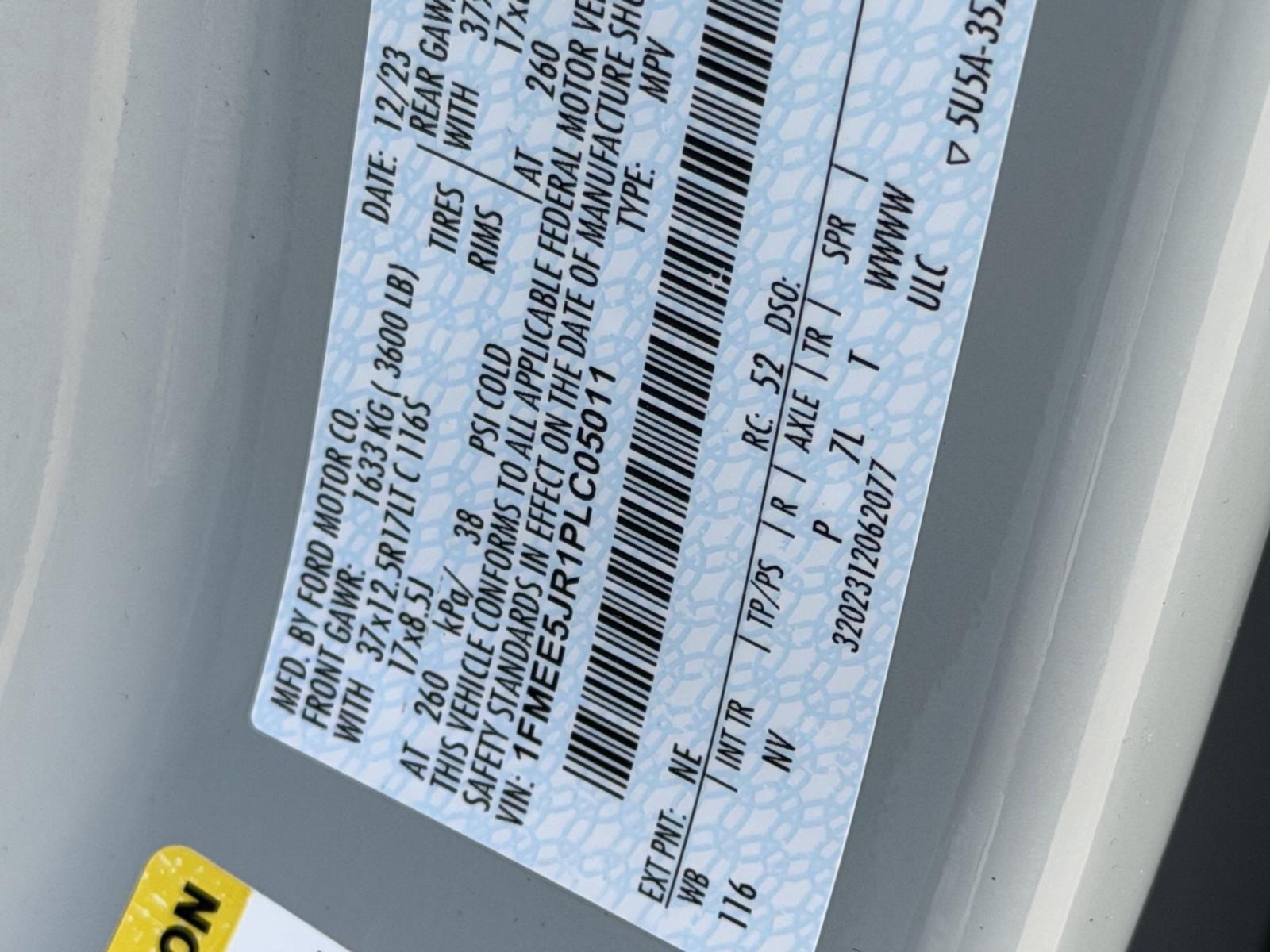 Vin: 1FMEE5JR1PLC05011