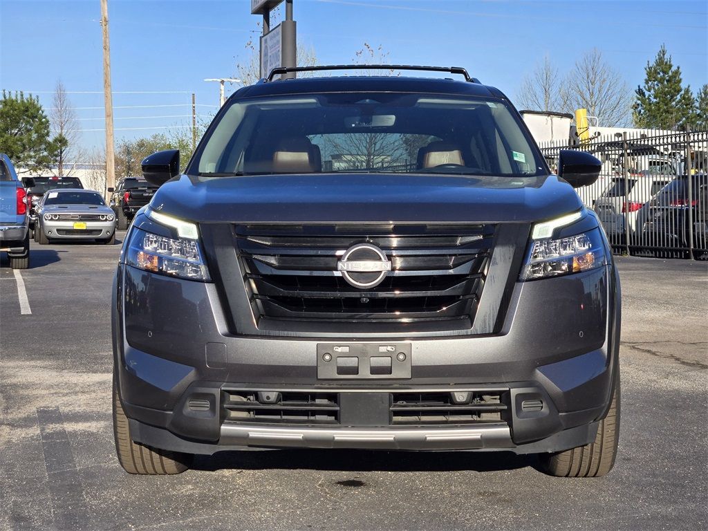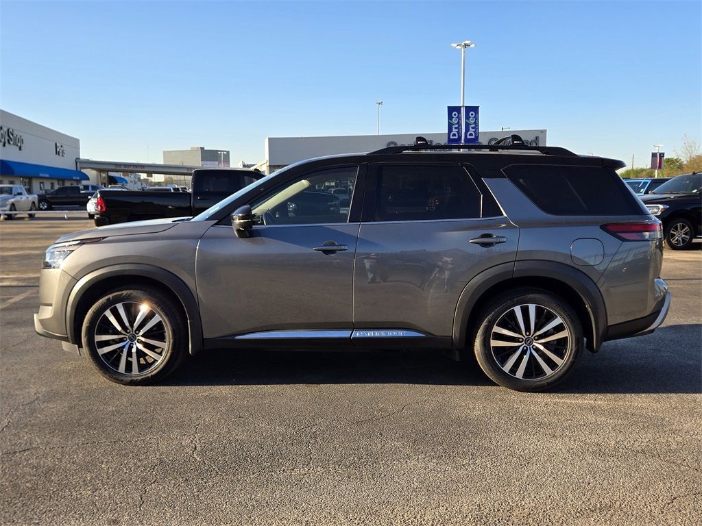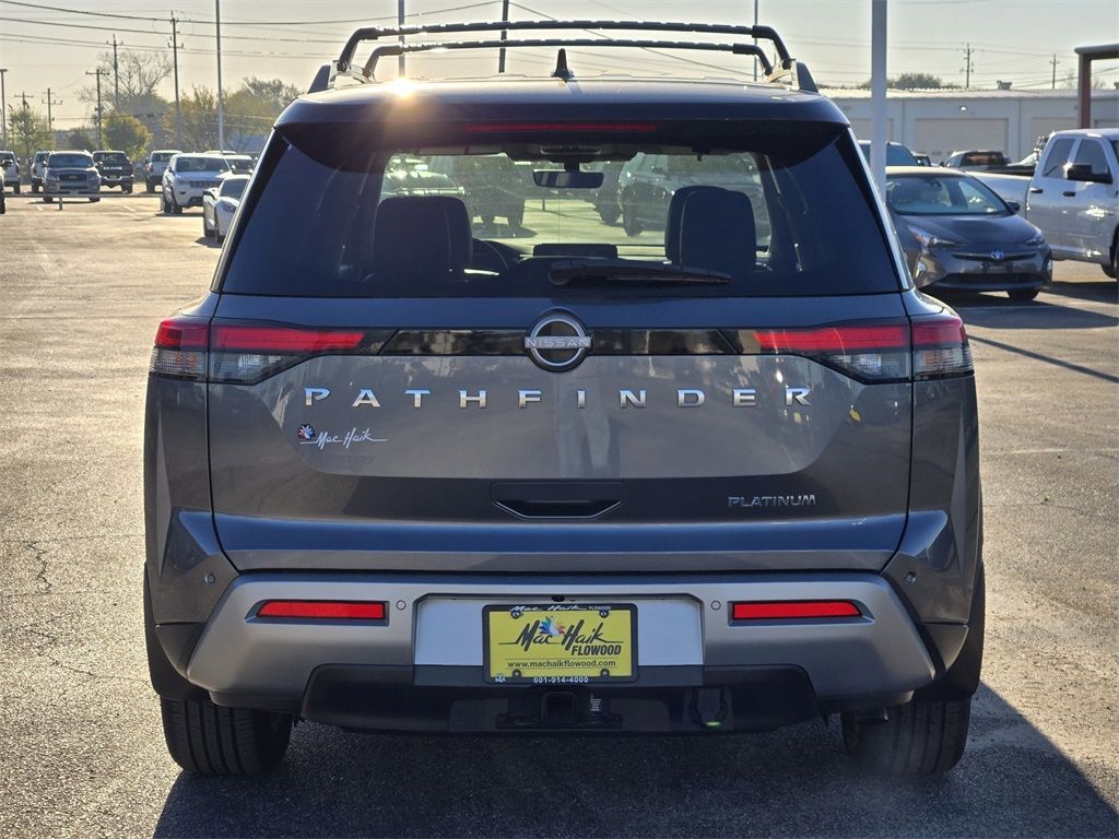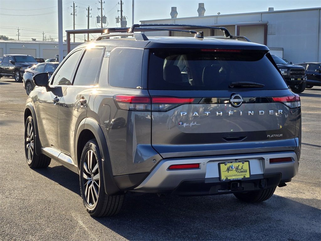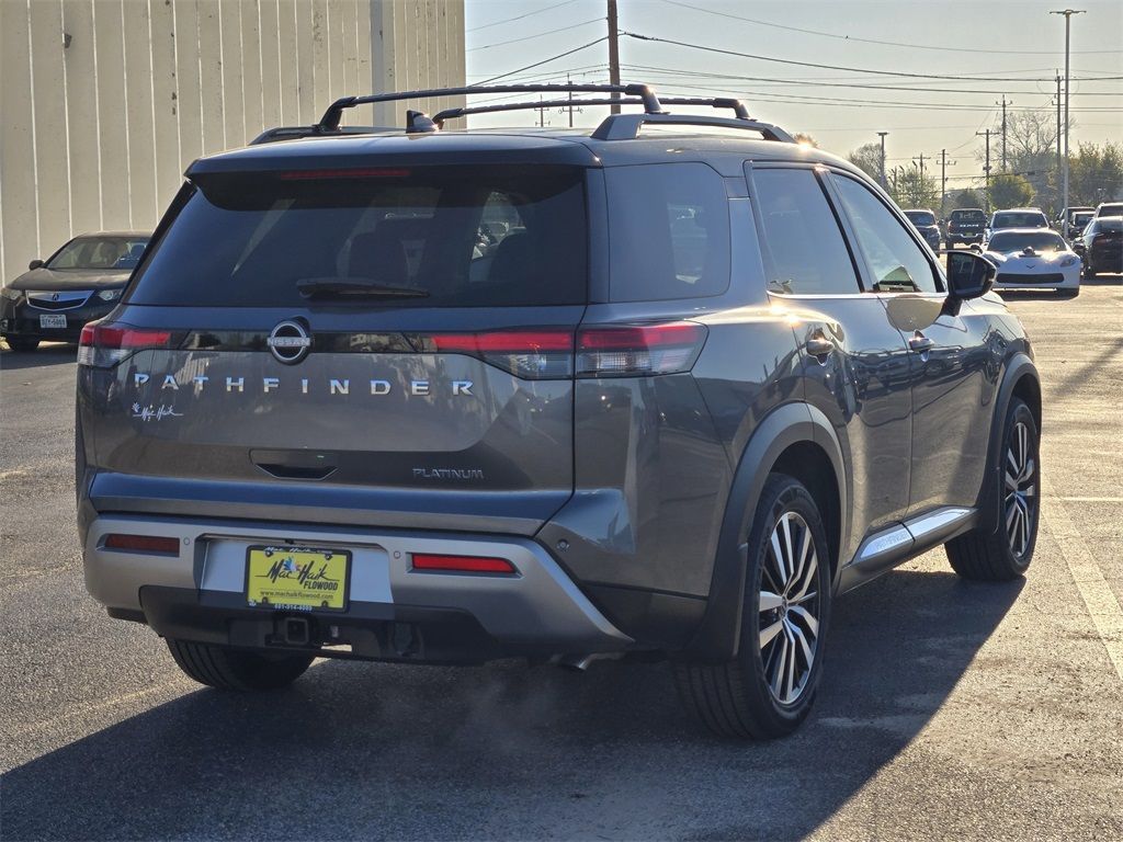 At Mac Haik, we believe in customer satisfaction and try to make it our mission that each and every shopper is happy with our service. Drivers in Spring, Cypress, Tomball, Humble, The Woodlands, Conroe, New Caney, Cleveland, Jersey Village, Magnolia, Baytown, Pasadena and all Houston surrounding areas have made the drive to Mac Haik Dodge Chrysler Jeep Ram again and again. Visit us now and experience why Mac Haik Dodge Chrysler Jeep Ram is Houston's most awarded dealership of all time! Buy with confidence! All of our vehicles are put through a rigorous inspection and are fully reconditioned. Certified. Odometer is 4556 miles below market average!Gun Metallic/Super Black 2023 Nissan Pathfinder Platinum FWD 9-Speed Automatic V6This 2023 Nissan Pathfinder Platinum in Gun Metallic/Super Black includes the following features: V6 9-Speed Automatic FWD Cargo Package (Cargo Area Protector, Cargo Net, and First Aid Kit), Mac Haik Certified, 13 Speakers, 3rd row seats: bench, 4-Wheel Disc Brakes, ABS brakes, Air Conditioning, Alloy wheels, AM/FM radio: SiriusXM, Auto High-beam Headlights, Auto tilt-away steering wheel, Auto-dimming Rear-View mirror, Automatic temperature control, Axle Ratio: 4.334, Bench Seat Carpeted Floor Mats (Set of 4), Black Splash Guards (Set of 4), Bodyside moldings, Bose Premium Audio System, Brake assist, Bumpers: body-color, Cross Bars, Delay-off headlights, Driver door bin, Driver vanity mirror, Dual front impact airbags, Dual front side impact airbags, Electronic Stability Control, Emergency communication system: NissanConnect Services, Exterior Parking Camera Rear, Four wheel independent suspension, Front anti-roll bar, Front Bucket Seats, Front Center Armrest, Front dual zone A/C, Front reading lights, Fully automatic headlights, Garage door transmitter: HomeLink, Heads-Up Display, Heated & Cooled Front Bucket Seats, Heated door mirrors, Heated front seats, Heated rear seats, Heated steering wheel, Illuminated entry, Knee airbag, Leather steering wheel, Low tire pressure warning, Memory seat, Navigation system: NissanConnect Navigation, NissanConnect w/Navigation & Services, Occupant sensing airbag, Outside temperature display, Overhead airbag, Overhead console, Panic alarm, Passenger door bin, Passenger vanity mirror, Power door mirrors, Power driver seat, Power Liftgate, Power moonroof, Power passenger seat, Power steering, Power windows, Radio data system, Radio: AM/FM Audio System, Rain sensing wipers, Rear air conditioning, Rear anti-roll bar, Rear reading lights, Rear seat center armrest, Rear side impact airbag, Rear window defroster, Rear window wiper, Reclining 3rd row seat, Remote keyless entry, Security system, Semi-Aniline Leather Seating Surfaces, Speed control, Speed-sensing steering, Speed-Sensitive Wipers, Split folding rear seat, Spoiler, Steering wheel memory, Steering wheel mounted audio controls, Tachometer, Telescoping steering wheel, Tilt steering wheel, Traction control, Trip computer, Turn signal indicator mirrors, Variably intermittent wipers, Ventilated front seats, and Wheels: 20" Machined Alloy w/Dark Met Gray Finish. Recent Arrival! 20/27 City/Highway MPGCertification Program Details: Type your description here