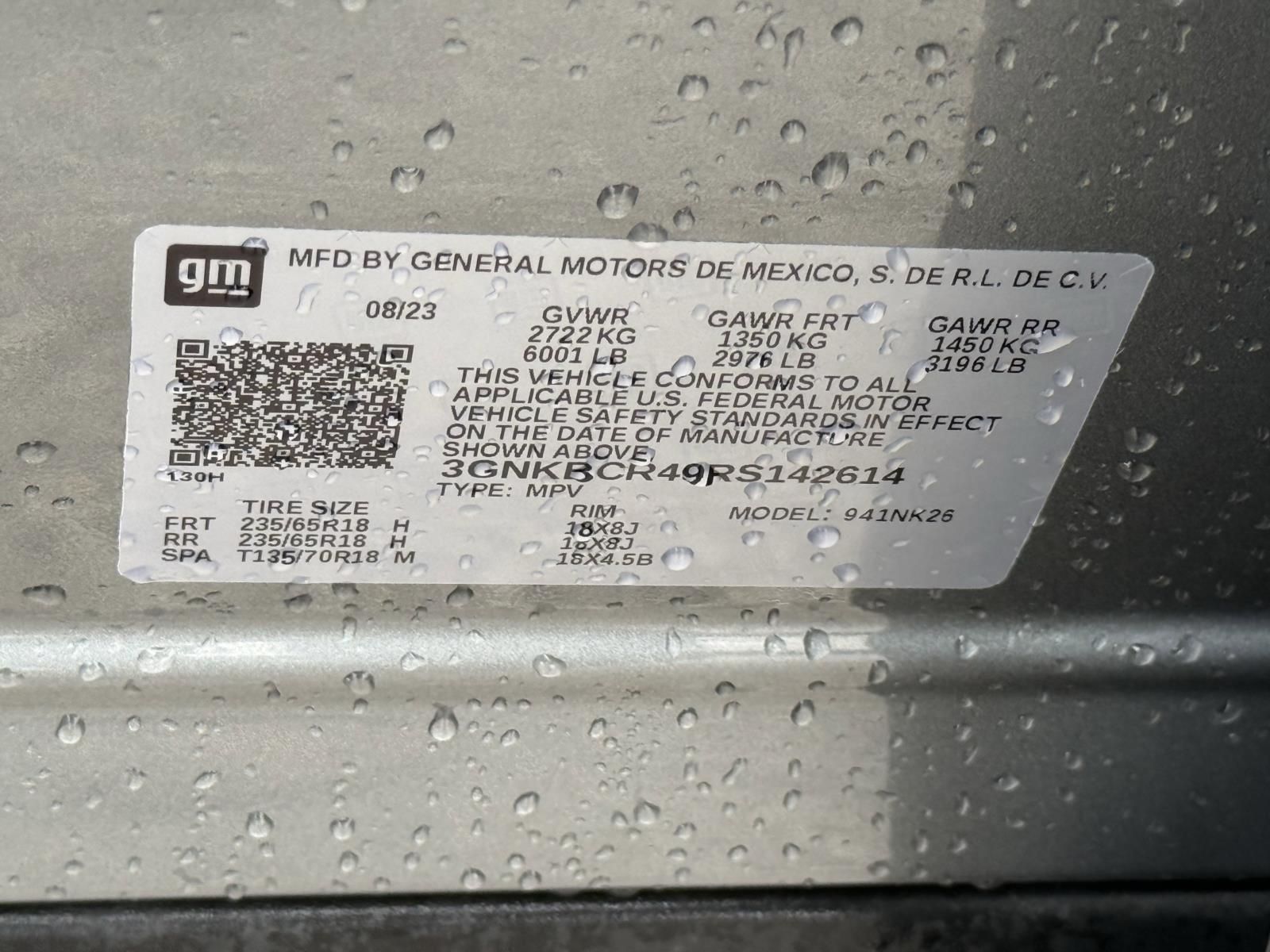 Vin: 3GNKBCR49RS142614