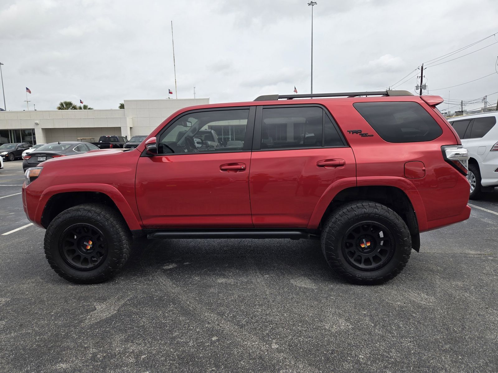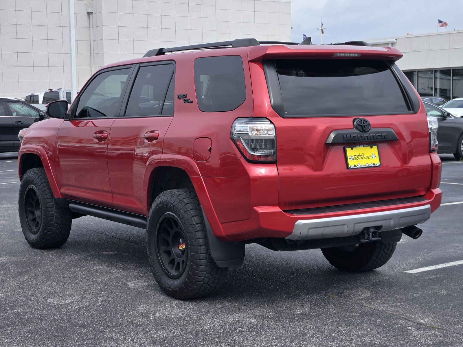 Why Buy From Mac Haik Ford Houston-- At Mac Haik Ford Houston, a family-owned and operated dealership proudly serving Houston for over 40 years, we make cars buy simple, transparent, and stress-free. • Transparent Pricing – No hidden fees, just honest, upfront pricing • Competitive Deals – Priced to compete with the best in the Texas market • Easy Buying Process – Shop, get pre-approved, and value your trade online • Huge Selection – New and Pre-owned and Certified vehicles ready to go • Customer First – Friendly, no-pressure experience • Service You Can Count On – We’re here long after the sale. Vehicle Specs: Off Road Package (Black Roof Rails and Heated Outside Rear-View Mirrors), Off Road Premium Plus Package (Garage Door Opener and Multi-Terrain Back Monitor), 4Runner TRD Off-Road Premium, 4D Sport Utility, 4.0L V6 DOHC 24V, 5-Speed with ECT, 4WD, Barcelona Red Metallic, Black/Graphite w/SofTex Seat Trim, 3.727 Axle Ratio, 4-Wheel Disc Brakes, 8 Speakers, ABS brakes, Air Conditioning, Alloy wheels, AM/FM radio: SiriusXM, Anti-whiplash front head restraints, Apple CarPlay/Android Auto, Auto High-beam Headlights, Auto-dimming Rear-View mirror, Brake assist, Bumpers: body-color, Compass, Driver door bin, Driver vanity mirror, Dual front impact airbags, Dual front side impact airbags, Electronic Stability Control, Emergency communication system: Safety Connect (1-year trial), Exterior Parking Camera Rear, Front anti-roll bar, Front Bucket Seats, Front Center Armrest, Front fog lights, Front reading lights, Front wheel independent suspension, Garage door transmitter: HomeLink, Heated door mirrors, Heated Front Bucket Seats, Heated front seats, Heated steering wheel, Illuminated entry, Knee airbag, Leather Shift Knob, Low tire pressure warning, Navigation System, Occupant sensing airbag, Outside temperature display, Overhead airbag, Overhead console, Panic alarm, Passenger door bin, Passenger vanity mirror, Power door mirrors, Power driver seat, Power passenger seat, Power steering, Power windows, Radio: Premium Audio, Rear anti-roll bar, Rear seat center armrest, Rear window defroster, Rear window wiper, Remote keyless entry, Security system, SofTex Seat Trim, Speed control, Speed-sensing steering, Split folding rear seat, Spoiler, Steering wheel mounted audio controls, Tachometer, Telescoping steering wheel, Tilt steering wheel, Traction control, Trip computer, Turn signal indicator mirrors, Variably intermittent wipers, and Wheels: 17" Unique 7-Spoke Off-Road Alloy.Barcelona Red Metallic 2024 Toyota 4Runner TRD Off-Road Premium 4WD 5-Speed with ECT 4.0L V6 DOHC 24V Clean Carfax, One Owner Carfax, 4Runner TRD Off-Road Premium, 4D Sport Utility, 4.0L V6 DOHC 24V, 5-Speed with ECT, 4WD, Barcelona Red Metallic, Black/Graphite w/SofTex Seat Trim, Black Roof Rails, Garage Door Opener, Heated Outside Rear-View Mirrors, Multi-Terrain Back Monitor, Off Road Package, Off Road Premium Plus Package.Recent Arrival! Odometer is 16705 miles below market average!CARFAX One-Owner.