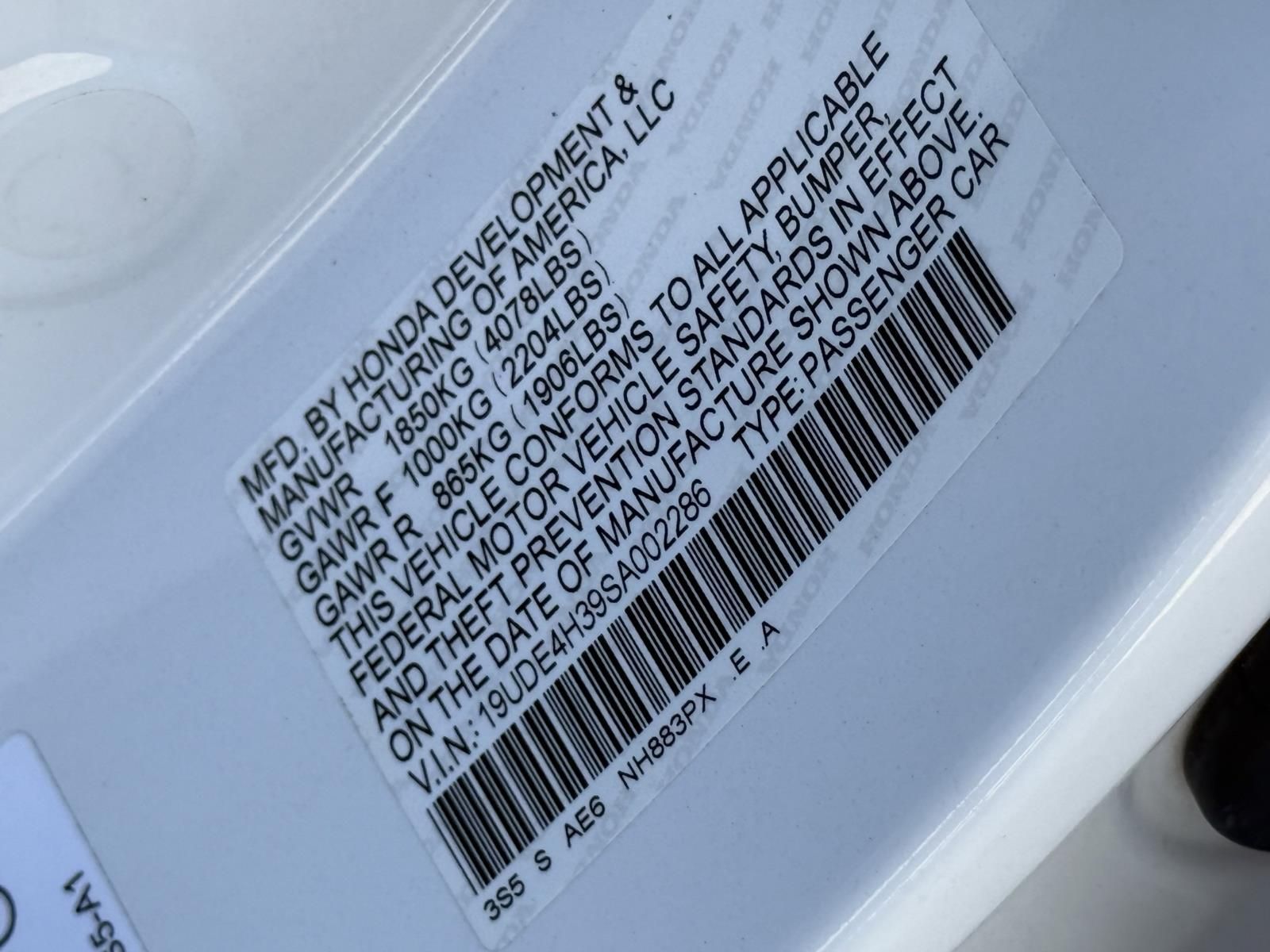 Vin: 19UDE4H39SA002286