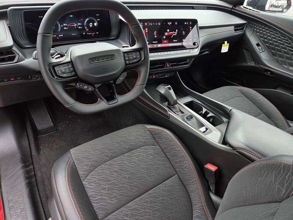 Redeye 2025 Dodge Charger R/T AWD 1-Speed Automatic Electric Motor AWD, Black Artificial Leather.This 2025 Dodge Charger R/T in Redeye includes the following features: Electric Motor 1-Speed Automatic AWD Quick Order Package 25M R/T, Sun & Sound Package (18 High Performance Alpine Speakers w/Subwoofer and Full Glass Roof), Two Tone Paint Group, AWD, Black Artificial Leather, 10 Speakers, 18" x 8.5" Aluminum Wheels, 2-Way Manual Adjust Head Restraints, 2-Way Power Driver Lumbar Adjust, 4-Wheel Disc Brakes, 8-Way Power Driver Seat Adjust, ABS brakes, Air Conditioning, Alloy wheels, AM/FM radio: SiriusXM w/360L, Apple CarPlay/Android Auto, Auto-dimming Rear-View mirror, Automatic temperature control, Black Seats, Brake assist, Bumpers: body-color, Compass, Delay-off headlights, Driver door bin, Driver vanity mirror, Dual front impact airbags, Dual front side impact airbags, Electronic Stability Control, Emergency communication system: Dodge Connect, Four wheel independent suspension, Front anti-roll bar, Front Bucket Seats, Front Center Armrest, Front dual zone A/C, Front reading lights, Fully automatic headlights, Garage door transmitter, Heated door mirrors, Heated Exterior Mirrors, Heated Front Seats, Heated front seats, Heated steering wheel, Illuminated entry, Knee airbag, Leather Shift Knob, Leatherette/Cloth Performance Seats, Low Back Bucket Seats, Low tire pressure warning, Navigation System, Nexen Brand Tires, Occupant sensing airbag, Outside temperature display, Overhead airbag, Overhead console, Panic alarm, ParkView Rear Back-Up Camera, Passenger door bin, Passenger vanity mirror, Power Adjust Mirrors, Power door mirrors, Power driver seat, Power steering, Power windows, Radio data system, Radio: Uconnect 5 Nav w/12.3" Display, Rear anti-roll bar, Rear reading lights, Rear seat center armrest, Rear window defroster, Remote keyless entry, Security system, Speed control, Split folding rear seat, Sport steering wheel, Steering wheel mounted audio controls, Telescoping steering wheel, Tilt steering wheel, Traction control, Trip computer, and Variably intermittent wipers. Recent Arrival! 104/91 City/Highway MPG