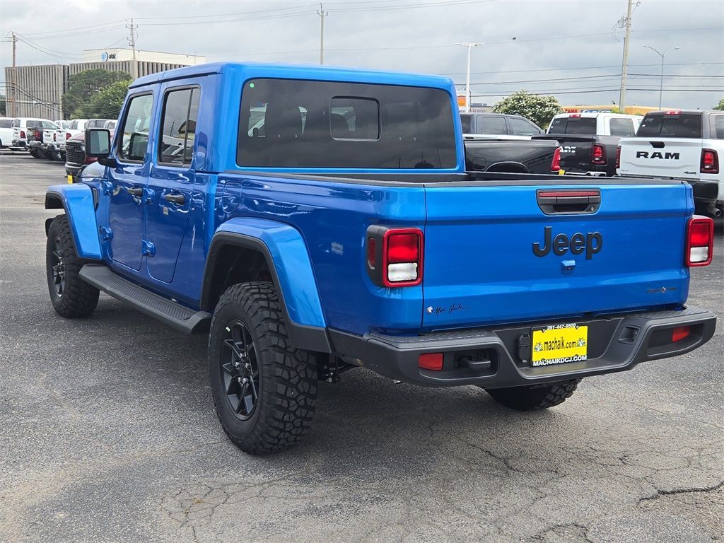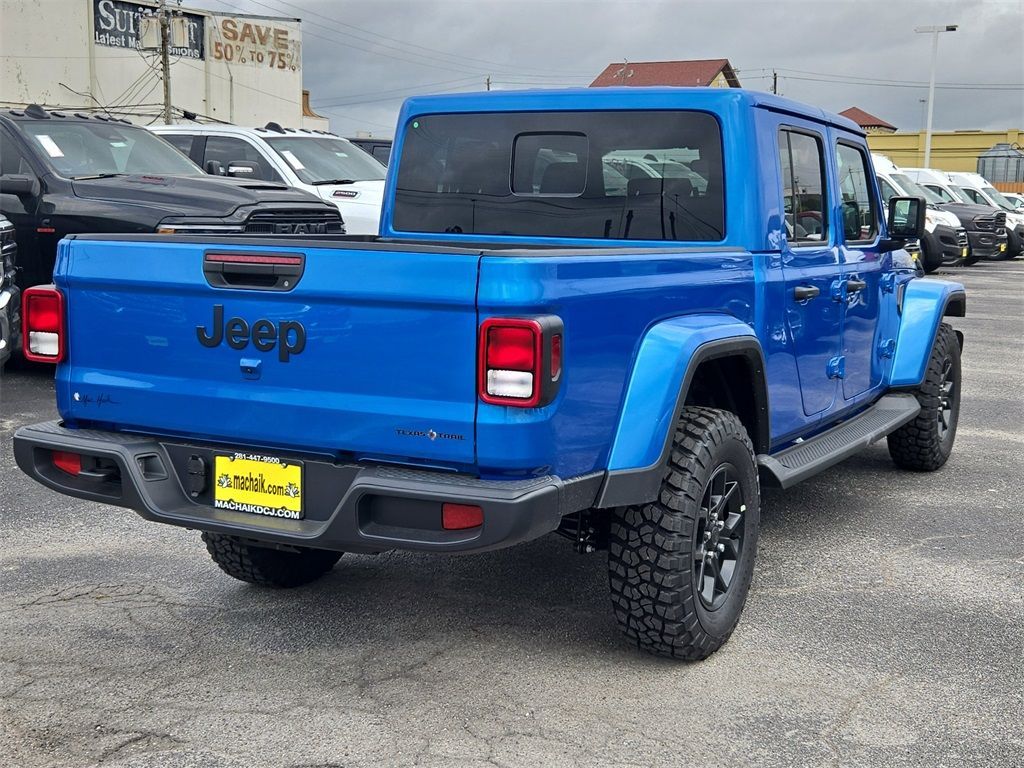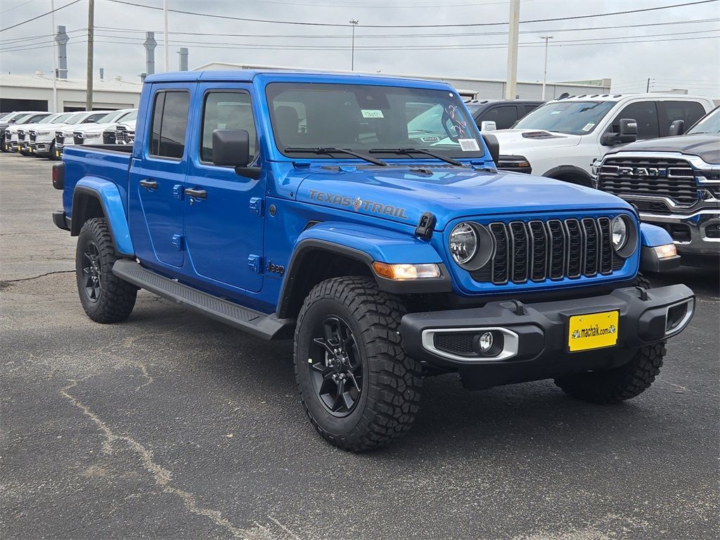 Hydro Blue Pearlcoat 2025 Jeep Gladiator Texas Trail 4WD 8-Speed Automatic 3.6L V6 24V VVTThis 2025 Jeep Gladiator Texas Trail in Hydro Blue Pearlcoat includes the following features: 3.6L V6 24V VVT 8-Speed Automatic 4WD Convenience Group (Corning Gorilla Glass, Daytime Running Lamp System, Emergency/Assistance Call, Front Door Locks 2-Door Passive Entry, Heated Front Seats, Heated Steering Wheel, Remote Start System, and Universal Garage Door Opener), Quick Order Package 24J Texas Trail (97 MPH Vehicle Max Speed Calibration, Advanced Brake Assist, Automatic Headlamps, Body Color 3-Piece Hard Top, Body Color Fender Flares (2-Piece), Deep Tint Sunscreen Windows, Freedom Panel Storage Bag, Full Length Floor Console Premium Armrest, Full Speed Forward Collision Warning Plus, Hard Seat Back, Integrated Radar Camera Module (IRCM), Leather Wrapped Park Brake Handle, Leather Wrapped Shift Knob, Power 4-Way Driver Lumbar Adjust, Power 4-Way Passenger Lumbar Adjust, Power Adjust 8-Way Driver Seat, Power Adjust 8-Way Front Passenger Seat, Power Heated Mirrors, Premium Door Trim Panel, Premium McKinley Trimmed Seats, Premium Wrapped Steering Wheel, Rear Armrest w/Cupholder Seat, Rear Sliding Window, Rear Window Defroster, Security Alarm, Sun Visors w/Illuminated Vanity Mirrors, Texas Trail, Texas Trail Tailgate & Hood Decals, Wheels: 17" x 7.5" Painted Black, and Willys Suspension), 110 MPH Vehicle Max Speed Calibration, 12.3" Touchscreen Display, 3.73 Rear Axle Ratio, 4-Wheel Disc Brakes, 4G LTE Wi-Fi Hot Spot, 8 Speakers, ABS brakes, Air Conditioning, Alexa Built-In, AM/FM radio: SiriusXM, Apple CarPlay, Apple CarPlay/Android Auto, Brake assist, Cloth Low-Back Bucket Seats, Compass, Connectivity - US/Canada, Delay-off headlights, Driver door bin, Driver vanity mirror, Dual front impact airbags, Dual front side impact airbags, Electronic Stability Control, Front anti-roll bar, Front Bucket Seats, Front Center Armrest w/Storage, Front fog lights, Front License Plate Bracket, Front reading lights, Google Android Auto, Illuminated entry, Integrated roll-over protection, Low tire pressure warning, Manufacturer's Statement of Origin, MOPAR All-Weather Slush Mats, Normal Duty Suspension, Occupant sensing airbag, Outside temperature display, Overhead airbag, Panic alarm, ParkView Rear Back-Up Camera, Passenger door bin, Passenger vanity mirror, Power steering, Power windows, Radio data system, Radio: Uconnect 5 w/12.3" Display, Rear anti-roll bar, Rear reading lights, Remote keyless entry, Side Steps, Speed control, Split folding rear seat, Steering wheel mounted audio controls, Tachometer, Telescoping steering wheel, Tilt steering wheel, Traction control, Trip computer, USB Host Flip, Variably intermittent wipers, Voltmeter, and Wheels: 17" x 7.5" Black Steel Styled.