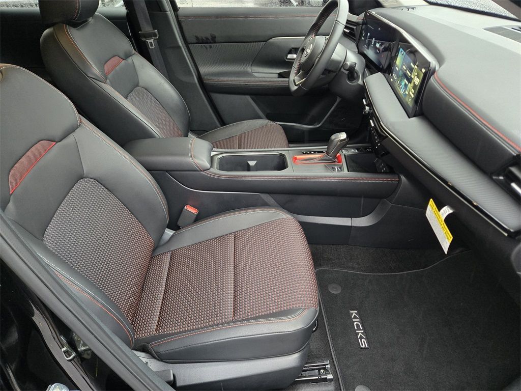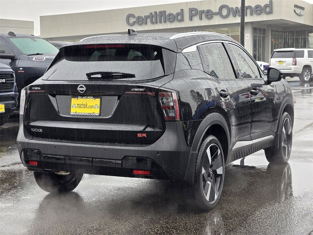 At Mac Haik, we believe in customer satisfaction and try to make it our mission that each and every shopper is happy with our service. Drivers in Spring, Cypress, Tomball, Humble, The Woodlands, Conroe, New Caney, Cleveland, Jersey Village, Magnolia, Baytown, Pasadena and all Houston surrounding areas have made the drive to Mac Haik Dodge Chrysler Jeep Ram again and again. Visit us now and experience why Mac Haik Dodge Chrysler Jeep Ram is Houston's most awarded dealership of all time! Buy with confidence! All of our vehicles are put through a rigorous inspection and are fully reconditioned. Certified. Odometer is 1526 miles below market average!Super Black 2025 Nissan Kicks SR FWD CVT with Xtronic 2.0L DOHCThis 2025 Nissan Kicks SR in Super Black includes the following features: 2.0L DOHC CVT with Xtronic FWD Mac Haik Certified, 17" Alloy Wheels, 19" Alloy Wheels, 4-Wheel Disc Brakes, 6 Speakers, ABS brakes, Air Conditioning, Alloy wheels, AM/FM radio: Sirius, Auto High-beam Headlights, Automatic temperature control, Brake assist, Bumpers: body-color, Carpeted Floor Mats & Underfloor Protector, Delay-off headlights, Driver door bin, Driver vanity mirror, Dual front impact airbags, Dual front side impact airbags, Electronic Stability Control, Front anti-roll bar, Front Bucket Seats, Front Center Armrest, Front reading lights, Front wheel independent suspension, Fully automatic headlights, Illuminated entry, Knee airbag, Leather Shift Knob, Leather steering wheel, Low tire pressure warning, Occupant sensing airbag, Outside temperature display, Overhead airbag, Overhead console, Panic alarm, Passenger door bin, Passenger vanity mirror, Power door mirrors, Power steering, Power windows, Radio data system, Radio: AM/FM Audio System, Rear anti-roll bar, Rear reading lights, Rear seat center armrest, Rear side impact airbag, Rear window defroster, Rear window wiper, Remote keyless entry, Security system, Speed control, Speed-sensing steering, Splash Guards, Split folding rear seat, Spoiler, Sport Cloth/Leatherette Seat Trim, Sport steering wheel, Steering wheel mounted audio controls, Tachometer, Telescoping steering wheel, Tilt steering wheel, Traction control, Trip computer, Turn signal indicator mirrors, Variably intermittent wipers, and Wireless Apple CarPlay/Wireless Android Auto. 28/35 City/Highway MPGCertification Program Details: Type your description here