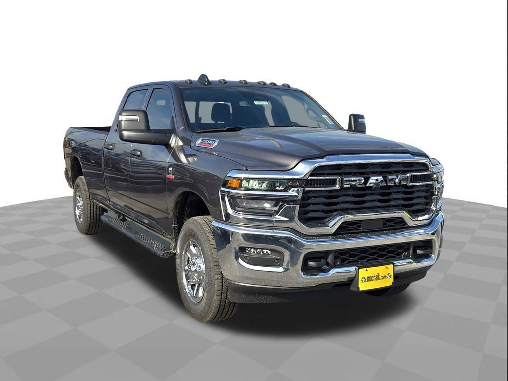Granite Crystal Metallic Clearcoat 2025 Ram 2500 Tradesman 4WD 8-Speed Automatic 6.7L I6This 2025 Ram 2500 Tradesman in Granite Crystal Metallic Clearcoat includes the following features: 6.7L I6 8-Speed Automatic 4WD Quick Order Package 24A Tradesman, Tradesman Level 2 Equipment Group (115V Auxiliary Front Power Outlet, 12" Touchscreen Display, 2 Way Rear Headrest Seat, 4 Way Front Headrests, 40/20/40 Split Bench Seat, 400W Inverter, 4G LTE Wi-Fi Hot Spot, Air Conditioning ATC w/Dual Zone Control, Alexa Built-In, Anti-Spin Differential Rear Axle, Apple CarPlay, Auto-Dimming Rear-View Mirror, Black Exterior Mirrors, Bright Front Bumper, Bright Rear Bumper, Carpet Floor Covering, Center Hub, Chrome Grille Surround, Cloth 40/20/40 Bench Seat, Connected Travel & Traffic Services, Connectivity - US/Canada, Disassociated Touchscreen Display, Emergency Vehicle Alert System (EVAS), Exterior 115V AC Outlet, Exterior Mirrors Courtesy Lamps, Exterior Mirrors w/Heating Element, Exterior Mirrors w/Supplemental Signals, Front & Rear Floor Mats, Front Armrest w/Cupholders, Global Telematics Box Module (TBM), Google Android Auto, GPS Antenna Input, GPS Navigation, HD Radio, Integrated Voice Command w/Bluetooth, Manual Adjust 4-Way Driver Seat, Manual Adjust 4-Way Front Passenger Seat, Manual Folding Exterior Mirrors, Manual Telescoping Mirrors, Matte Black Mesh Grille w/Chrome, Mirror Running Lights, Mopar Black Tubular Side Steps, Off-Road Info Pages, ParkSense Front/Rear Park Assist System, Power Adjust Mirrors, Power Adjustable Convex Aux Mirrors, Power Heated Folding Telescope Mirrors, Radio: Uconnect 5 Nav w/12.0" Display, Rear Folding Seat, Rear Power Sliding Window, Remote USB Port - Charge Only, Selectable Tire Fill Alert, SiriusXM Radio Service, SiriusXM w/360L, Storage Tray, Tinted Acoustic Windshield Glass, Trailer Tow Pages, and Wheels: 18" x 8.0" Steel Chrome Clad), 4-Wheel Disc Brakes, 5th Wheel/Gooseneck Towing Prep Group, 6 Speakers, ABS brakes, Air Conditioning, AM/FM radio: SiriusXM, Apple CarPlay/Android Auto, Black Wheel Center Hub, Brake assist, Clearance Lamps, Compass, Delay-off headlights, Driver door bin, Dual front impact airbags, Dual front side impact airbags, Electronic Stability Control, Front anti-roll bar, Front Center Armrest w/Storage, Front fog lights, Front License Plate Bracket, Front reading lights, Fully automatic headlights, Heavy Duty Vinyl 40/20/40 Split Bench Seat, Illuminated entry, Low tire pressure warning, Manufacturer's Statement of Origin, Occupant sensing airbag, Outside temperature display, Overhead airbag, Overhead console, Panic alarm, ParkView Rear Back-Up Camera, Passenger door bin, Passenger vanity mirror, Power steering, Power windows, Radio data system, Radio: Uconnect 5 w/8.4" Display, Rear anti-roll bar, Rear step bumper, Rear window defroster, Remote keyless entry, Speed control, Tachometer, Tilt steering wheel, Traction control, Variably intermittent wipers, Voltmeter, and Wheels: 17" x 7.5" Black Steel Styled.