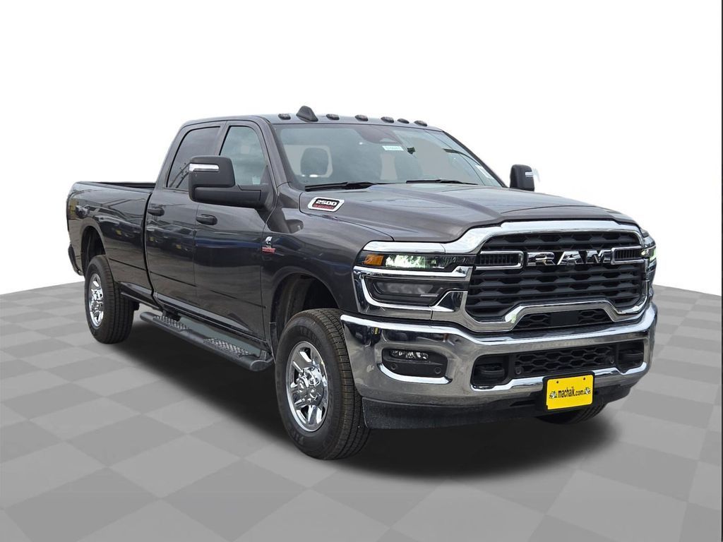 Granite Crystal Metallic Clearcoat 2025 Ram 2500 Tradesman 4WD 8-Speed Automatic 6.7L I6This 2025 Ram 2500 Tradesman in Granite Crystal Metallic Clearcoat includes the following features: 6.7L I6 8-Speed Automatic 4WD Quick Order Package 24A Tradesman, Tradesman Level 2 Equipment Group (115V Auxiliary Front Power Outlet, 12" Touchscreen Display, 2 Way Rear Headrest Seat, 4 Way Front Headrests, 40/20/40 Split Bench Seat, 400W Inverter, 4G LTE Wi-Fi Hot Spot, Air Conditioning ATC w/Dual Zone Control, Alexa Built-In, Anti-Spin Differential Rear Axle, Apple CarPlay, Auto-Dimming Rear-View Mirror, Black Exterior Mirrors, Bright Front Bumper, Bright Rear Bumper, Carpet Floor Covering, Center Hub, Chrome Grille Surround, Cloth 40/20/40 Bench Seat, Connected Travel & Traffic Services, Connectivity - US/Canada, Disassociated Touchscreen Display, Emergency Vehicle Alert System (EVAS), Exterior 115V AC Outlet, Exterior Mirrors Courtesy Lamps, Exterior Mirrors w/Heating Element, Exterior Mirrors w/Supplemental Signals, Front & Rear Floor Mats, Front Armrest w/Cupholders, Global Telematics Box Module (TBM), Google Android Auto, GPS Antenna Input, GPS Navigation, HD Radio, Integrated Voice Command w/Bluetooth, Manual Adjust 4-Way Driver Seat, Manual Adjust 4-Way Front Passenger Seat, Manual Folding Exterior Mirrors, Manual Telescoping Mirrors, Matte Black Mesh Grille w/Chrome, Mirror Running Lights, Mopar Black Tubular Side Steps, Off-Road Info Pages, ParkSense Front/Rear Park Assist System, Power Adjust Mirrors, Power Adjustable Convex Aux Mirrors, Power Heated Folding Telescope Mirrors, Radio: Uconnect 5 Nav w/12.0" Display, Rear Folding Seat, Rear Power Sliding Window, Remote USB Port - Charge Only, Selectable Tire Fill Alert, SiriusXM Radio Service, SiriusXM w/360L, Storage Tray, Tinted Acoustic Windshield Glass, Trailer Tow Pages, and Wheels: 18" x 8.0" Steel Chrome Clad), 4-Wheel Disc Brakes, 5th Wheel/Gooseneck Towing Prep Group, 6 Speakers, ABS brakes, Air Conditioning, AM/FM radio: SiriusXM, Apple CarPlay/Android Auto, Black Wheel Center Hub, Brake assist, Clearance Lamps, Compass, Delay-off headlights, Driver door bin, Dual front impact airbags, Dual front side impact airbags, Electronic Stability Control, Front anti-roll bar, Front Center Armrest w/Storage, Front fog lights, Front License Plate Bracket, Front reading lights, Fully automatic headlights, Heavy Duty Vinyl 40/20/40 Split Bench Seat, Illuminated entry, Low tire pressure warning, Manufacturer's Statement of Origin, Occupant sensing airbag, Outside temperature display, Overhead airbag, Overhead console, Panic alarm, ParkView Rear Back-Up Camera, Passenger door bin, Passenger vanity mirror, Power steering, Power windows, Radio data system, Radio: Uconnect 5 w/8.4" Display, Rear anti-roll bar, Rear step bumper, Rear window defroster, Remote keyless entry, Speed control, Tachometer, Tilt steering wheel, Traction control, Variably intermittent wipers, Voltmeter, and Wheels: 17" x 7.5" Black Steel Styled.
