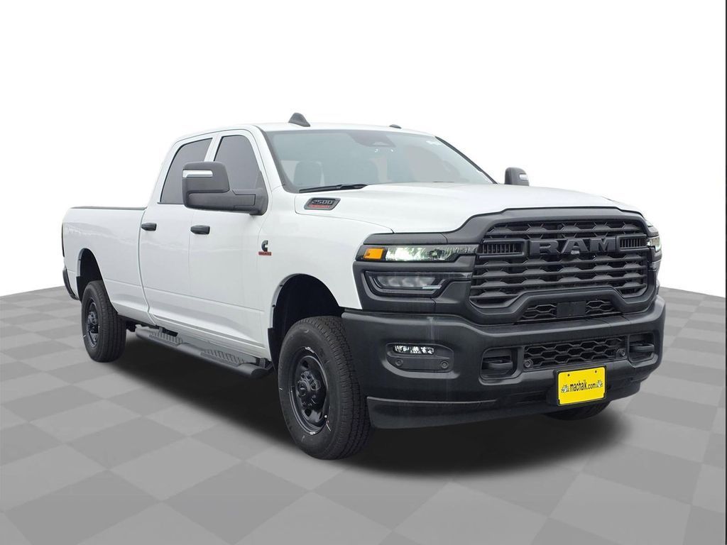 Bright White Clearcoat 2025 Ram 2500 Tradesman 4WD 8-Speed Automatic 6.7L I6This 2025 Ram 2500 Tradesman in Bright White Clearcoat includes the following features: 6.7L I6 8-Speed Automatic 4WD Cold Weather Group (Engine Block Heater and MOPAR Winter Front Grille Cover), Quick Order Package 24A Tradesman, Tradesman Level 1 Equipment Group (115V Auxiliary Front Power Outlet, 12" Touchscreen Display, 2 Way Rear Headrest Seat, 4 Way Front Headrests, 40/20/40 Split Bench Seat, 400W Inverter, 4G LTE Wi-Fi Hot Spot, Air Conditioning ATC w/Dual Zone Control, Alexa Built-In, Anti-Spin Differential Rear Axle, Apple CarPlay, Auto-Dimming Rear-View Mirror, Black Exterior Mirrors, Carpet Floor Covering, Cloth 40/20/40 Bench Seat, Connected Travel & Traffic Services, Connectivity - US/Canada, Disassociated Touchscreen Display, Emergency Vehicle Alert System (EVAS), Exterior 115V AC Outlet, Exterior Mirrors Courtesy Lamps, Exterior Mirrors w/Heating Element, Exterior Mirrors w/Supplemental Signals, Front & Rear Floor Mats, Front Armrest w/Cupholders, Global Telematics Box Module (TBM), Google Android Auto, GPS Antenna Input, GPS Navigation, HD Radio, Integrated Voice Command w/Bluetooth, Manual Adjust 4-Way Driver Seat, Manual Adjust 4-Way Front Passenger Seat, Manual Folding Exterior Mirrors, Manual Telescoping Mirrors, Mirror Running Lights, Mopar Black Tubular Side Steps, Off-Road Info Pages, ParkSense Front/Rear Park Assist System, Power Adjust Mirrors, Power Adjustable Convex Aux Mirrors, Power Heated Folding Telescope Mirrors, Radio: Uconnect 5 Nav w/12.0" Display, Rear Folding Seat, Rear Power Sliding Window, Remote USB Port - Charge Only, Selectable Tire Fill Alert, SiriusXM Radio Service, SiriusXM w/360L, Storage Tray, Tinted Acoustic Windshield Glass, and Trailer Tow Pages), 4-Wheel Disc Brakes, 6 Speakers, ABS brakes, Air Conditioning, AM/FM radio: SiriusXM, Apple CarPlay/Android Auto, Black Wheel Center Hub, Brake assist, Compass, Delay-off headlights, Driver door bin, Dual Alternators Rated at 480 Amps, Dual front impact airbags, Dual front side impact airbags, Electronic Stability Control, Front anti-roll bar, Front Center Armrest w/Storage, Front fog lights, Front License Plate Bracket, Front reading lights, Fully automatic headlights, Heavy Duty Vinyl 40/20/40 Split Bench Seat, Illuminated entry, Low tire pressure warning, Manufacturer's Statement of Origin, Occupant sensing airbag, Outside temperature display, Overhead airbag, Overhead console, Panic alarm, ParkView Rear Back-Up Camera, Passenger door bin, Passenger vanity mirror, Power steering, Power windows, Radio data system, Radio: Uconnect 5 w/8.4" Display, Rear anti-roll bar, Rear Backup Alarm, Rear step bumper, Rear Wheelhouse Liners, Rear window defroster, Remote keyless entry, Speed control, Tachometer, Tilt steering wheel, Traction control, Variably intermittent wipers, Voltmeter, and Wheels: 17" x 7.5" Black Steel Styled.