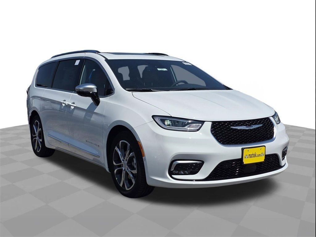 Bright White Clearcoat 2026 Chrysler Pacifica Pinnacle FWD 9-Speed 948TE Automatic 3.6L V6 24V VVTThis 2026 Chrysler Pacifica Pinnacle in Bright White Clearcoat includes the following features: 3.6L V6 24V VVT 9-Speed 948TE Automatic FWD Quick Order Package 27S, 19 Speakers, 3.25 Axle Ratio, 3rd row seats: split-bench, 4-Wheel Disc Brakes, A/V remote, ABS brakes, Air Conditioning, Alloy wheels, AM/FM radio: SiriusXM 360L, Apple CarPlay/Android Auto, Audio memory, Auto-dimming door mirrors, Auto-dimming Rear-View mirror, Automatic temperature control, Bodyside moldings, Brake assist, Bumpers: body-color, Compass, Delay-off headlights, Driver door bin, Driver vanity mirror, Dual front impact airbags, Dual front side impact airbags, Electronic Stability Control, Emergency communication system: Chrysler Connect, Four wheel independent suspension, Front anti-roll bar, Front Bucket Seats, Front Center Armrest, Front dual zone A/C, Front fog lights, Front reading lights, Fully automatic headlights, Garage door transmitter, harman/kardon® Speakers, Headphones, Heated door mirrors, Heated front seats, Heated rear seats, Heated steering wheel, Illuminated entry, Knee airbag, Low tire pressure warning, Lumbar Pillow, Memory seat, Navigation System, Occupant sensing airbag, Outside temperature display, Overhead airbag, Overhead console, Panic alarm, ParkView Rear Back-Up Camera, Passenger door bin, Passenger vanity mirror, Power door mirrors, Power driver seat, Power Liftgate, Power moonroof, Power passenger seat, Power steering, Power windows, Premium Leather Trimmed Bucket Seats, Radio data system, Radio: Uconnect 5 Nav with 10.1" Display, Rain sensing wipers, Rear air conditioning, Rear reading lights, Rear window defroster, Rear window wiper, Reclining 3rd row seat, Remote keyless entry, Roof rack, Security system, Sepia Seat Color, Speed control, Split folding rear seat, Spoiler, Steering wheel mounted audio controls, Tachometer, Telescoping steering wheel, Tilt steering wheel, Touring Suspension, Traction control, Trip computer, Turn signal indicator mirrors, Variably intermittent wipers, Ventilated front seats, Voltmeter, and Wheels: 20" x 7.5" Paint/Polish Aluminum Design 2. 19/28 City/Highway MPG Price does not include tax, title, and license: $1500 - 2026 Southwest BC Bonus Cash . Exp. 03/31/2026 $3500 - 2026 National Retail Bonus Cash . Exp. 03/31/2026
