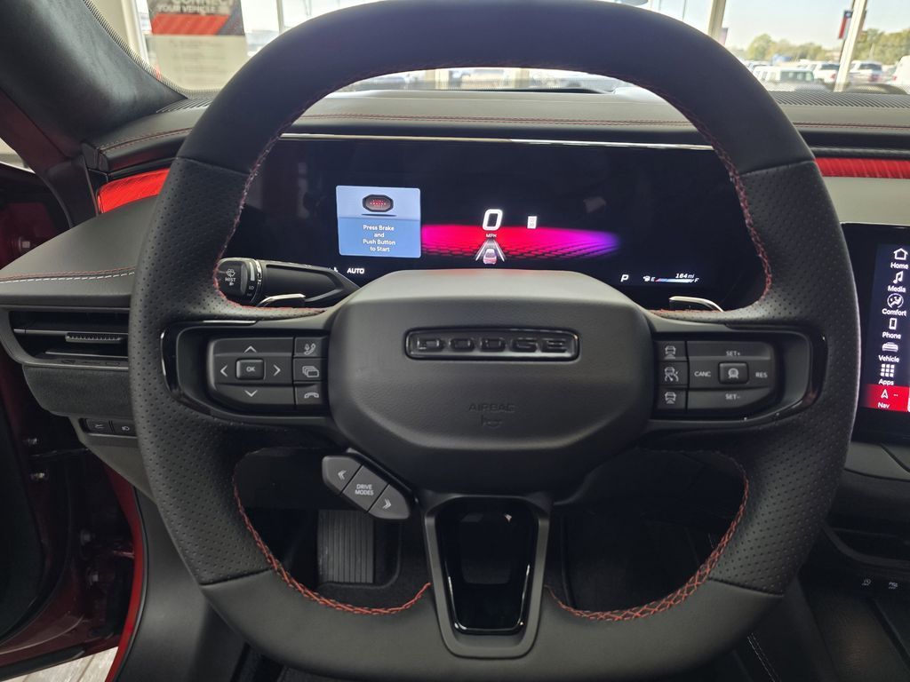 Redeye 2026 Dodge Charger R/T Scat Pack AWD 8-Speed Automatic HO AWD, Black Leather.This 2026 Dodge Charger R/T Scat Pack in Redeye includes the following features: HO 8-Speed Automatic AWD Carbon & Suede Package (Carbon Fiber Exterior Mirrors, Carbon Fiber Interior Accents, Carbon Fiber Multi-Function Mirrors, Door Panel w/Carbon Fiber Insert, Exterior Mirrors Logo Lamps, Exterior Mirrors with Memory, Heated Exterior Mirrors, Heated Front Seats, Heated Second Row Seats, High Back Bucket Seats, High Performance Seat Trim Outline, Instrument Panel with Carbon Fiber and Suede Wrap, Leather/Suede Performance Seats, Power 4-Way Driver Lumbar Adjust, Power 4-Way Passenger Lumbar Adjust, Power Adjust 12-Way Driver Seat, Power Adjust 12-Way Front Passenger Seat, Power Adjust Mirrors, Suede Headliner, and Ventilated Front Seats), Quick Order Package 22B Scat Pack Plus (16" Color Driver Display, 2-Way Manual Adjust Front Head Restraints, 2-Way Power Driver Lumbar Adjust, 4G LTE Wi-Fi Hot Spot, 8-Way Power Driver Seat Adjust, 800 Amp Maintenance Free Battery, Alexa Built-in, Attitude Adjustment Lighting, Automatic High-Beam Headlamp Control, Black Color Multi-Function Mirrors, Bright Pedals, Connected Travel and Traffic Services, Connectivity - US/Canada, Disassociated Touchscreen Display, Front Cubby Bin with Light, Glove Box Lamp, GPS Navigation, HD Radio, Heads-Up Display, Illuminated Door Pull Handles, Integrated Center Stack Radio, Integrated Voice Command with Bluetooth, Leatherette Seats, LED Footwell Lighting, LED Map Pockets, Low Back Bucket Seats, Map-in-Cluster Display, Performance Pages, Power 2-Way Passenger Lumbar Adjust, Power Adjust 8-Way Front Passenger Seat, Power Hatch, Power Tilt/Telescope Steering Column, Power Windows Global Down w/Key Fob, Premium LED Low-High Reflective Headlamps, Radio, Driver Seat, Mirrors and Steering Column Memory, Radio: Uconnect 5 Navigation with 12.3" Display, Rain Sensitive Windshield Wipers, Surround View Camera System, Traffic Sign Information, Windshield Wiper De-Icer, Wireless Apple CarPlay, Wireless Charging Pad, and Wireless Google Android Auto), Two Tone Paint Group, AWD, Black Leather, 10 Speakers, 4-Wheel Disc Brakes, ABS brakes, Active Noise Control System, Air Conditioning, Alloy wheels, AM/FM radio: SiriusXM w/360L, Apple CarPlay/Android Auto, Auto-dimming Rear-View mirror, Automatic temperature control, Black Seats, Brake assist, Bumpers: body-color, Compass, Delay-off headlights, Driver door bin, Driver vanity mirror, Dual front impact airbags, Dual front side impact airbags, Electronic Stability Control, Emergency communication system: Dodge Connect, Four wheel independent suspension, Front anti-roll bar, Front Bucket Seats, Front Center Armrest, Front dual zone A/C, Front License Plate Bracket, Front reading lights, Fully automatic headlights, Garage door transmitter, Heated door mirrors, Heated front seats, Heated steering wheel, Illuminated entry, Knee airbag, Leather Shift Knob, Leatherette/Cloth Performance Seats, Low tire pressure warning, Occupant sensing airbag, Outside temperature display, Overhead airbag, Overhead console, Panic alarm, ParkView Rear Back-Up Camera, Passenger door bin, Passenger vanity mirror, Power door mirrors, Power driver seat, Power steering, Power windows, Radio data system, Radio: Uconnect 5 with 12.3" Display, Rear anti-roll bar, Rear reading lights, Rear seat center armrest, Rear window defroster, Remote keyless entry, Security system, Speed control, Split folding rear seat, Spoiler, Sport steering wheel, Steering wheel mounted audio controls, Tachometer, Telescoping steering wheel, Tilt steering wheel, Traction control, Trip computer, Variably intermittent wipers, and Wheels: 20" x 10" Aluminum.