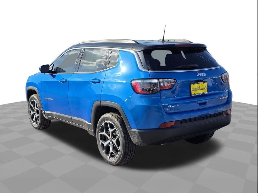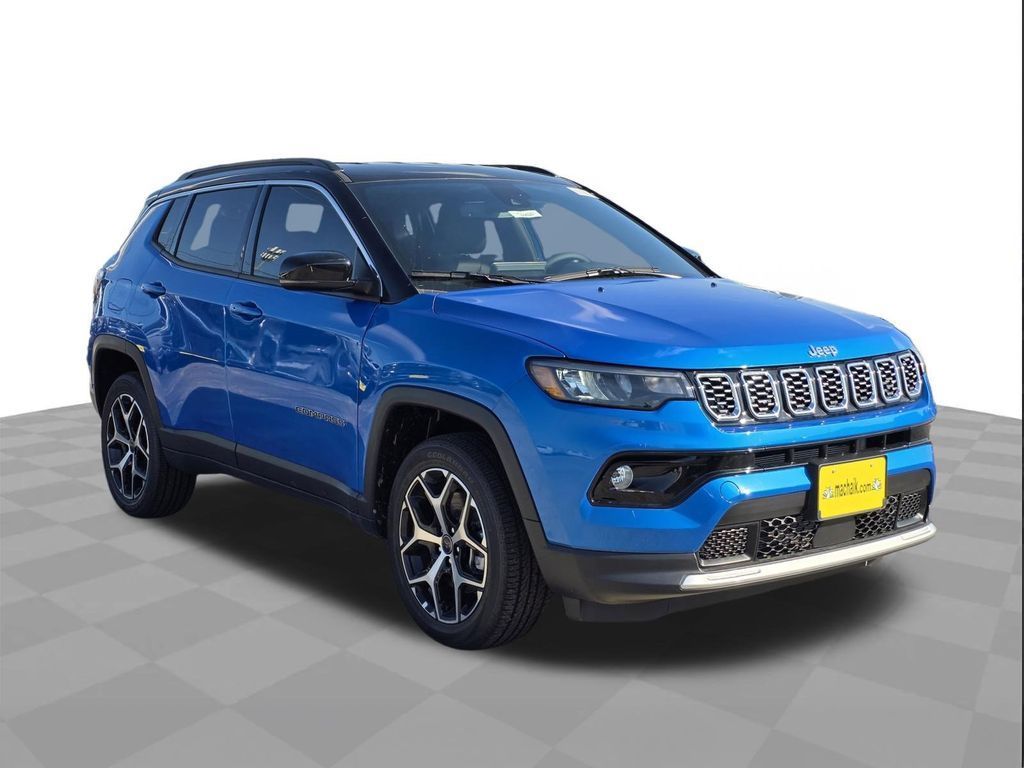 Hydro Blue Pearlcoat 2026 Jeep Compass Limited 4WD 8-Speed Automatic 2.0L I4 DOHC 4WD.This 2026 Jeep Compass Limited in Hydro Blue Pearlcoat includes the following features: 2.0L I4 DOHC 8-Speed Automatic 4WD Quick Order Package 29G Limited, 4WD, 10.1" Touchscreen Display, 3.73 Final Drive Ratio, 4-Wheel Disc Brakes, 4G LTE Wi-Fi Hot Spot, 6 Speakers, ABS brakes, Air Conditioning, Alloy wheels, AM/FM radio: SiriusXM, Auto High-beam Headlights, Auto-dimming Rear-View mirror, Automatic temperature control, Brake assist, Bumpers: body-color, Compass, Delay-off headlights, Driver door bin, Driver vanity mirror, Dual front impact airbags, Dual front side impact airbags, Electronic Stability Control, Emergency communication system: SiriusXM Guardian, Four wheel independent suspension, Front anti-roll bar, Front Bucket Seats, Front Center Armrest w/Storage, Front dual zone A/C, Front fog lights, Front License Plate Bracket, Front reading lights, Fully automatic headlights, Global Telematics Box Module, Heated door mirrors, Heated front seats, Heated steering wheel, Illuminated entry, Knee airbag, Leather Shift Knob, Leather steering wheel, Leatherette Seats, Low tire pressure warning, Occupant sensing airbag, Outside temperature display, Overhead airbag, Overhead console, Panic alarm, ParkView Rear Back-Up Camera, Passenger door bin, Passenger vanity mirror, Power door mirrors, Power driver seat, Power Liftgate, Power steering, Power windows, Premium audio system: UConnect 5, Radio: Uconnect 5 with 10.1" Display, Rain sensing wipers, Rear anti-roll bar, Rear seat center armrest, Rear window defroster, Rear window wiper, Remote keyless entry, Security system, SiriusXM Guardian - Included Trail (B), SiriusXM Radio Service, Speed control, Split folding rear seat, Spoiler, Steering wheel mounted audio controls, Tachometer, Telescoping steering wheel, Tilt steering wheel, Traction control, Trip computer, Turn signal indicator mirrors, Variably intermittent wipers, and Wheels: 18" x 7" Painted Diamond Cut Aluminum. 23/31 City/Highway MPG Price does not include tax, title, and license: $1000 - 2026 National Retail Bonus Cash . Exp. 04/30/2026
