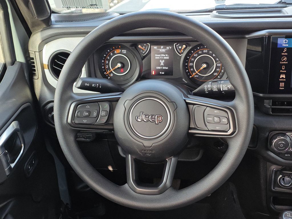 Anvil Clear Coat 2026 Jeep Wrangler Sport 4WD 8-Speed Automatic 2.0L I4 DOHCThis 2026 Jeep Wrangler Sport in Anvil Clear Coat includes the following features: 2.0L I4 DOHC 8-Speed Automatic 4WD Quick Order Package 22B Sport, 12.3" Touchscreen Display, 3.45 Overall Top Gear Ratio, 4-Wheel Disc Brakes, 4G LTE Wi-Fi Hot Spot, 8 Speakers, ABS brakes, Air Conditioning, AM/FM radio: SiriusXM with 360L, Apple CarPlay, Apple CarPlay/Android Auto, Aux Battery, Black 3-Piece Hard Top, Brake assist, Compass, Connectivity - US/Canada, Deep Tint Sunscreen Windows, Delay-off headlights, Driver door bin, Driver vanity mirror, Dual front impact airbags, Dual front side impact airbags, Electronic Stability Control, For More Info, Call 800-643-2112, Freedom Panel Storage Bag, Front anti-roll bar, Front Bucket Seats, Front Center Armrest w/Storage, Front fog lights, Front reading lights, Google Android Auto, Illuminated entry, Integrated Center Stack Radio, Integrated roll-over protection, Low tire pressure warning, Manufacture Statement of Origin, MOPAR All-Weather Floor Mats, No Soft Top, Non-Lock Fuel Cap Without Discriminator, Normal Duty Suspension, Occupant sensing airbag, Outside temperature display, Overhead airbag, Panic alarm, ParkView Rear Back-Up Camera, Passenger door bin, Passenger vanity mirror, Power steering, Power windows, Radio data system, Radio: Uconnect 5 with 12.3" Display, Rear anti-roll bar, Rear reading lights, Rear Window Defroster, Rear Window Wiper/Washer, Remote keyless entry, SiriusXM Radio Service, SiriusXM with 360L, Speed control, Split folding rear seat, Steering wheel mounted audio controls, Stop-Start Dual Battery System, Tachometer, Telescoping steering wheel, Tilt steering wheel, Traction control, Trip computer, Variably intermittent wipers, and Wheels: 17" x 7.5" Black Steel Styled. Price does not include tax, title, and license: $1500 - 2026 Southwest BC Bonus Cash . Exp. 03/31/2026