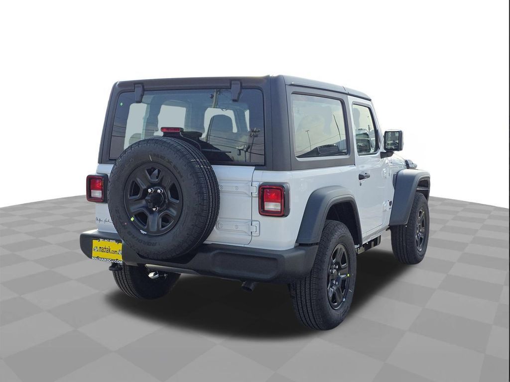 Bright White Clearcoat 2026 Jeep Wrangler Sport 4WD 8-Speed Automatic 2.0L I4 DOHCThis 2026 Jeep Wrangler Sport in Bright White Clearcoat includes the following features: 2.0L I4 DOHC 8-Speed Automatic 4WD Quick Order Package 22B Sport, 12.3" Touchscreen Display, 3.45 Overall Top Gear Ratio, 4-Wheel Disc Brakes, 4G LTE Wi-Fi Hot Spot, 8 Speakers, ABS brakes, Air Conditioning, AM/FM radio: SiriusXM with 360L, Apple CarPlay, Apple CarPlay/Android Auto, Aux Battery, Black 3-Piece Hard Top, Brake assist, Cloth Low-Back Bucket Seats, Compass, Connectivity - US/Canada, Delay-off headlights, Driver door bin, Driver vanity mirror, Dual front impact airbags, Dual front side impact airbags, Electronic Stability Control, For More Info, Call 800-643-2112, Freedom Panel Storage Bag, Front anti-roll bar, Front Bucket Seats, Front Center Armrest w/Storage, Front fog lights, Front reading lights, Google Android Auto, Illuminated entry, Integrated Center Stack Radio, Integrated roll-over protection, Low tire pressure warning, MOPAR All-Weather Floor Mats, Non-Lock Fuel Cap Without Discriminator, Normal Duty Suspension, Occupant sensing airbag, Outside temperature display, Overhead airbag, Panic alarm, ParkView Rear Back-Up Camera, Passenger door bin, Passenger vanity mirror, Power steering, Power windows, Radio data system, Radio: Uconnect 5 with 12.3" Display, Rear anti-roll bar, Rear reading lights, Rear Window Defroster, Rear Window Wiper/Washer, Remote keyless entry, SiriusXM Radio Service, SiriusXM with 360L, Speed control, Steering wheel mounted audio controls, Stop-Start Dual Battery System, Tachometer, Telescoping steering wheel, Tilt steering wheel, Traction control, Trip computer, Variably intermittent wipers, and Wheels: 17" x 7.5" Black Steel Styled.