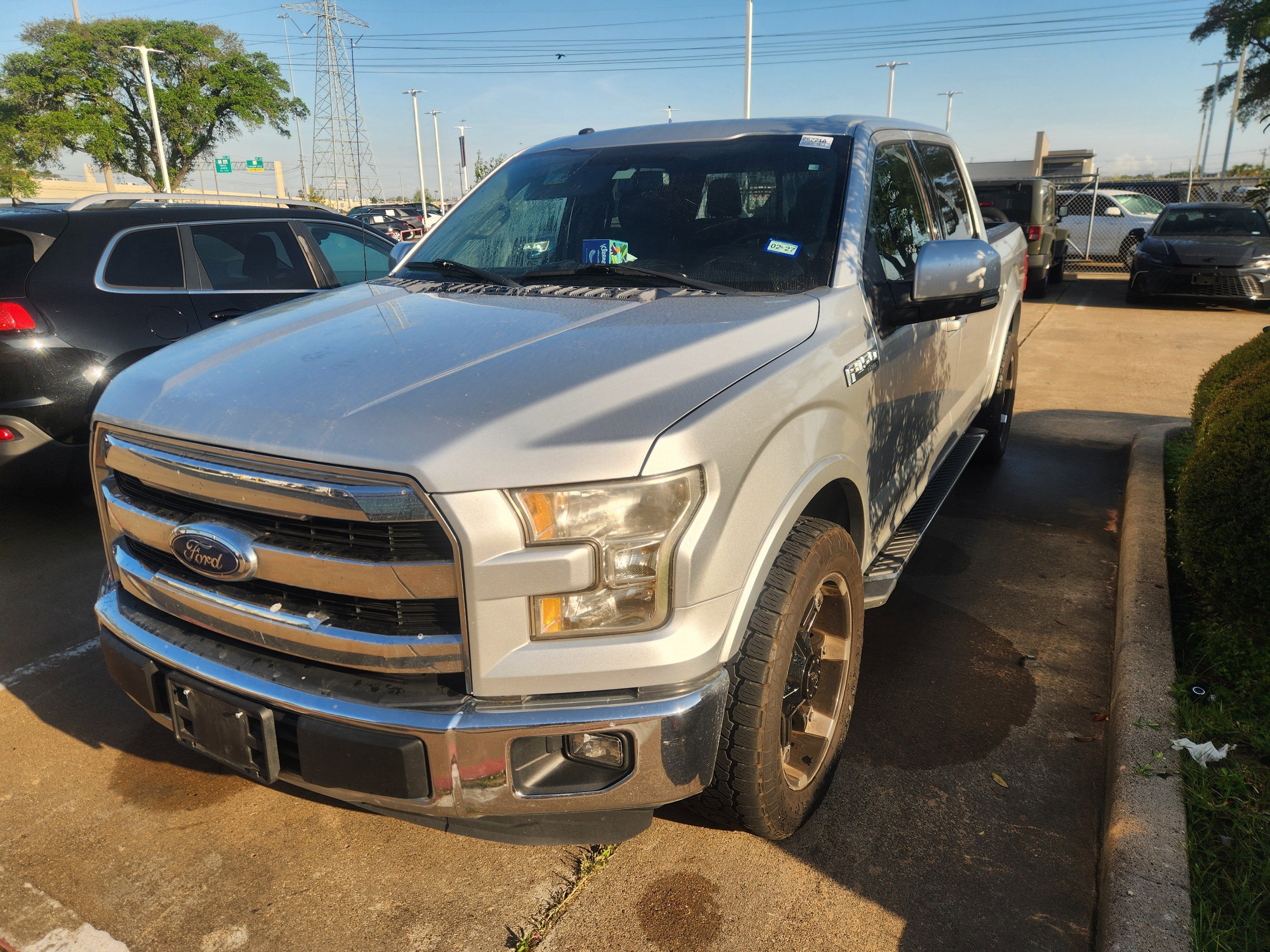 Silver 2015 Ford F-150 Lariat RWD 6-Speed Automatic Electronic 5.0L V8 FFV ABS brakes, Alloy wheels, Compass, Electronic Stability Control, Front dual zone A/C, Heated door mirrors, Heated front seats, Illuminated entry, Low tire pressure warning, Remote keyless entry, Traction control.