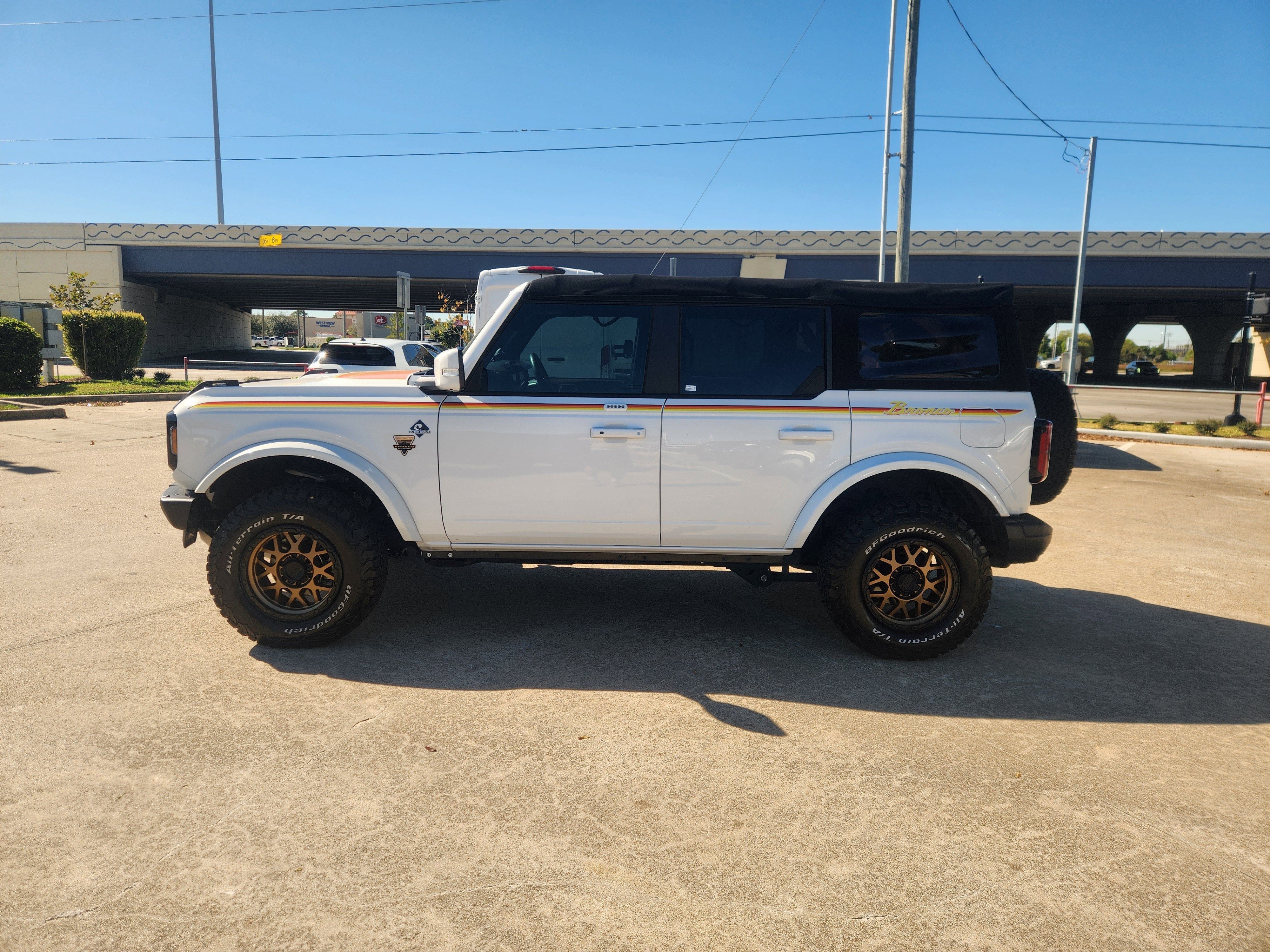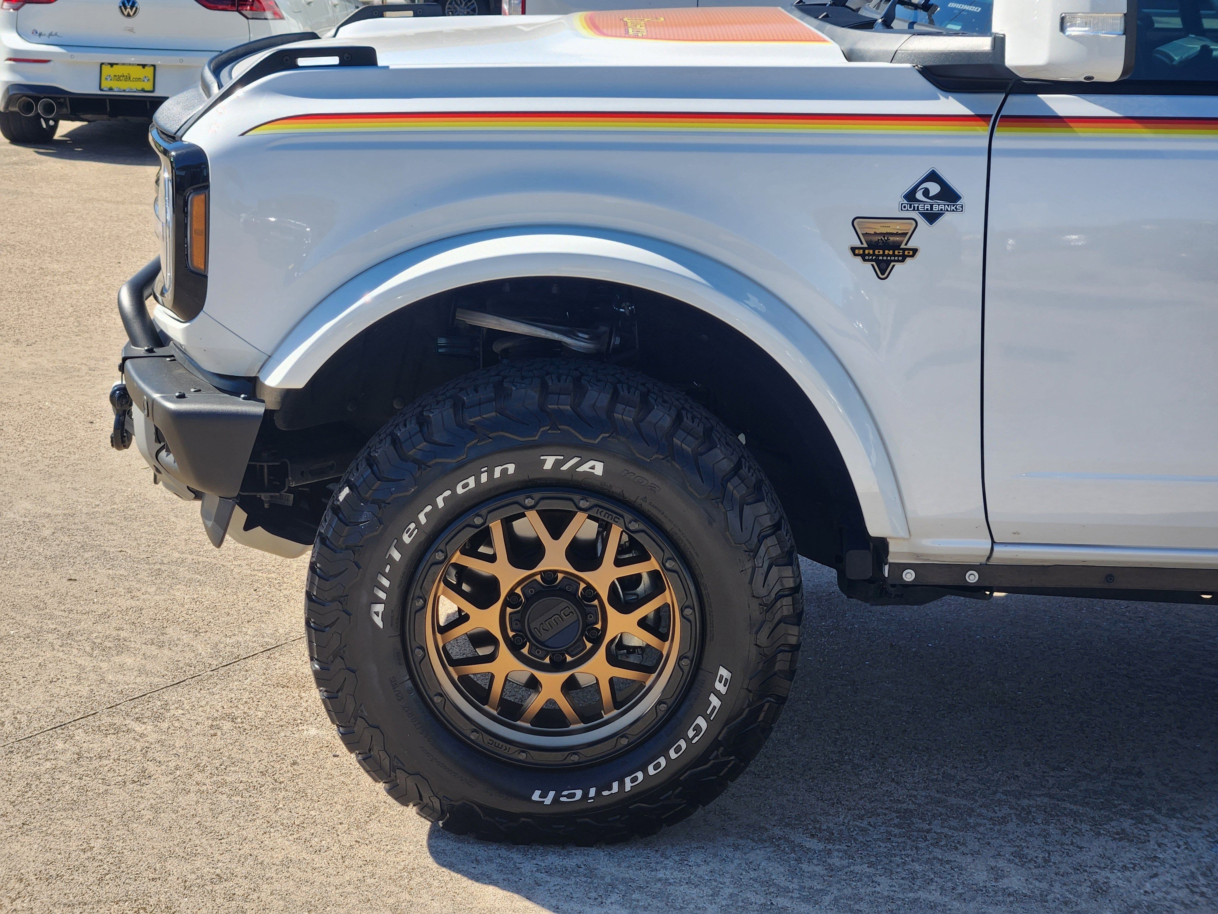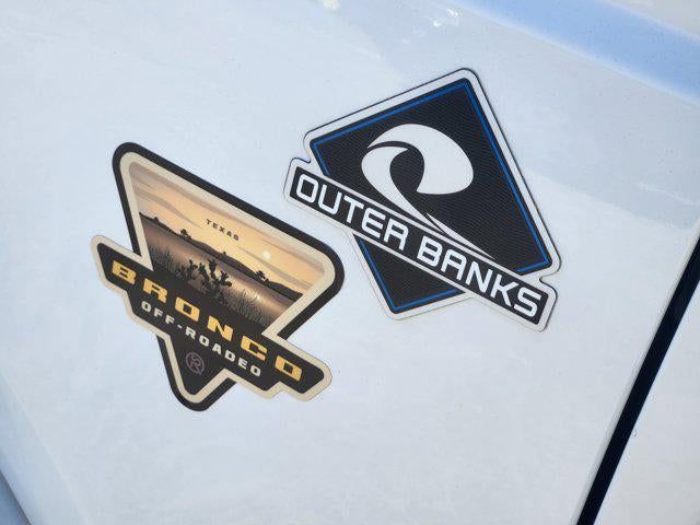 White 2022 Ford Bronco Outer Banks 4WD 10-Speed Automatic 2.7L EcoBoost V6 ABS brakes, Compass, Electronic Stability Control, Heated door mirrors, Illuminated entry, Low tire pressure warning, Remote keyless entry, Traction control.