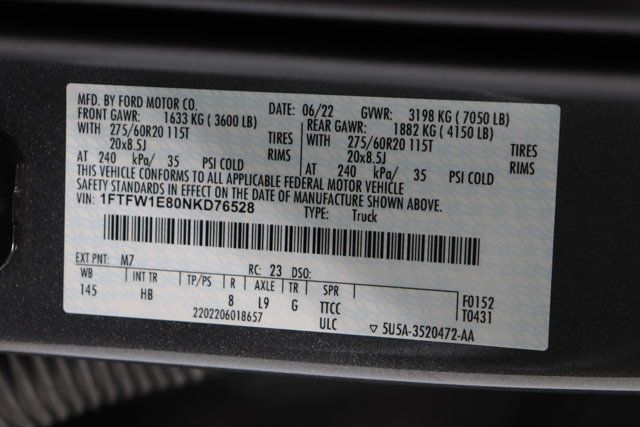 Vin: 1FTFW1E80NKD76528