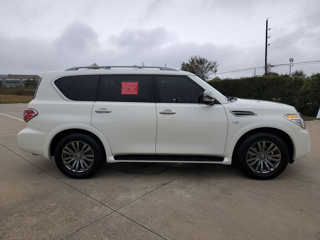 Certified. Recent Arrival! Odometer is 18866 miles below market average!Clean CARFAX. Pearl White Tricoat 2019 Nissan Armada PlatinumArmada Platinum Platinum Reserve Package & Captain's Chairs, Nissan Certified Select Certified, 4D Sport Utility, 5.6L V8 DOHC 32V Endurance, 7-Speed Automatic, RWD, Pearl White Tricoat, 2nd Row Captain's Chairs, 2nd Row Center Console w/ Padded Armrest, Captain's Chairs Package, Cargo Package, Carpeted Floor Mats w/ Captain Seat Package, Navigation System, Platinum Reserve Package, Two-Tone Semi-Aniline Leather Seat Trim, Wheels: 20" Dark Chrome Alloy.Awards: * 2019 KBB.com 5-Year Cost to Own AwardsCertification Program Details:Nissan Certified Select Details:* 84-Point Inspection* Limited Warranty: 12 Months/12,000 Miles (whichever comes first) from date of purchase* Vehicle History Report* Complimentary Service Visit* Roadside Assistance* Car Rental and Trip Interruption Reimbursement* Transferable Warranty* Warranty Deductible: $100Bg Unlimited Miles Powertrain Warranty. See Dealer for warranty details.Tomball, Houston, Harris, Montgomery, Katy, The Woodlands, Spring, 77375. Please call ahead to check availability!!