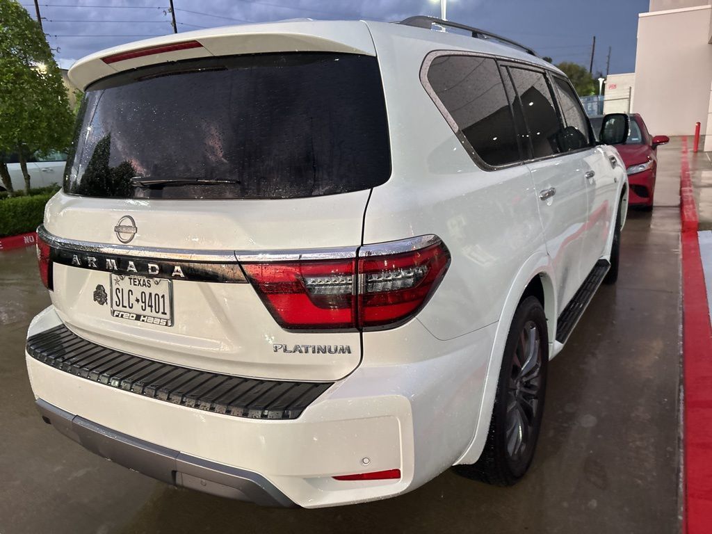 Certified. Recent Arrival! CARFAX One-Owner.Clean CARFAX. Aspen White Tricoat 2022 Nissan Armada PlatinumArmada Platinum Rear Entertainment & 2nd Row Captain's, Nissan Certified Certified, 4D Sport Utility, 5.6L V8 DOHC 32V LEV3-ULEV125 400hp, 7-Speed Automatic, RWD, Aspen White Tricoat, Black Leather, 2nd Row Captain's Chairs, 2nd Row Center Console w/Padded Armrest, A/V remote, Captain's Chairs Package, Headphones.Nissan Certified Details: * Roadside Assistance * Limited Warranty: 84 Month/100,000 Mile (whichever occurs first) * Vehicle History * Warranty Deductible: $100 * Transferable Warranty * 7 Year/100,000 Mile Limited Warranty, 24/7 Hour Roadside Assistance, Carfax Vehicle History Report, Plus 1 Year Pre-Paid Maintenance Included. Gas Powered Nissan Models Only. * 167 Point InspectionBg Unlimited Miles Powertrain Warranty. See Dealer for warranty details.Tomball, Houston, Harris, Montgomery, Katy, The Woodlands, Spring, 77375. Please call ahead to check availability!!