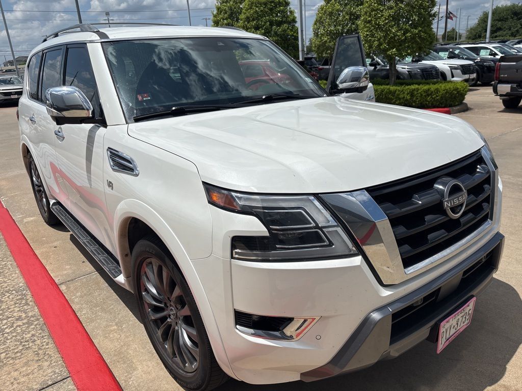 Certified. Recent Arrival! CARFAX One-Owner. Priced below KBB Fair Purchase Price!Clean CARFAX. Aspen White Tricoat 2022 Nissan Armada PlatinumArmada Platinum, Nissan Certified Select Certified, 4D Sport Utility, 5.6L V8 DOHC 32V LEV3-ULEV125 400hp, 7-Speed Automatic, RWD, Aspen White Tricoat, Brown w/Quilted Leather Seat Trim, 2nd Row Captain's Chairs, 2nd Row Center Console w/Padded Armrest, Captain's Chairs Package, Navigation System.Certification Program Details:Nissan Certified Select Details:* 84-Point Inspection* Limited Warranty: 12 Months/12,000 Miles (whichever comes first) from date of purchase* Vehicle History Report* Complimentary Service Visit* Roadside Assistance* Car Rental and Trip Interruption Reimbursement* Transferable Warranty* Warranty Deductible: $100Bg Unlimited Miles Powertrain Warranty. See Dealer for warranty details.Tomball, Houston, Harris, Montgomery, Katy, The Woodlands, Spring, 77375. Please call ahead to check availability!!