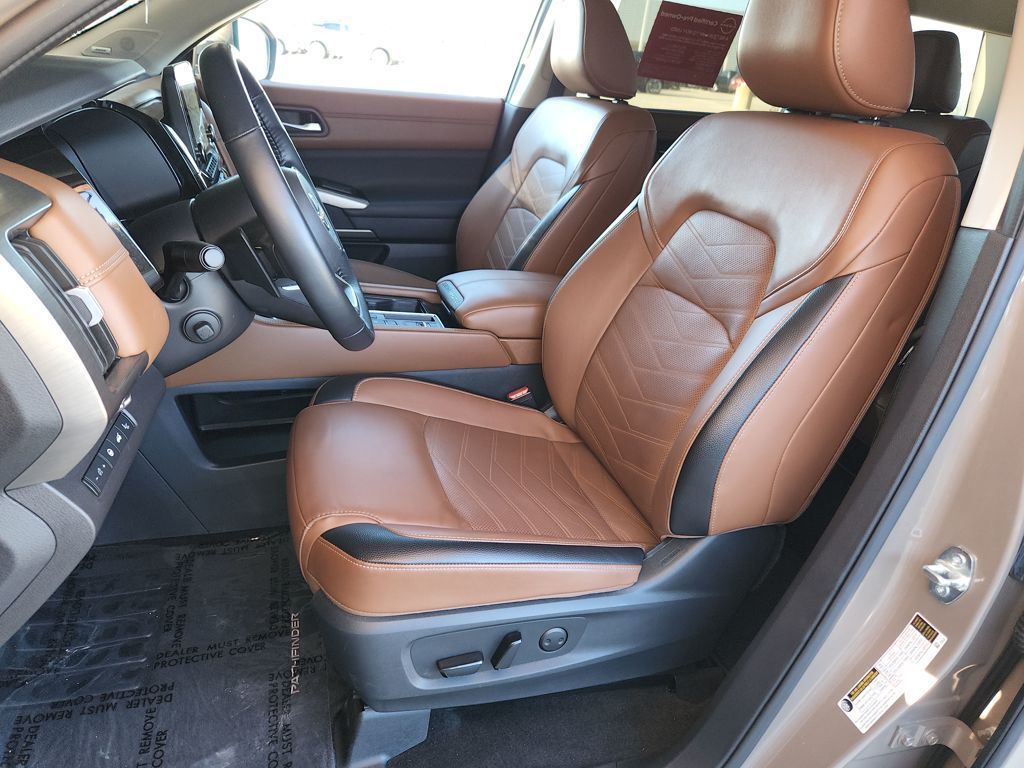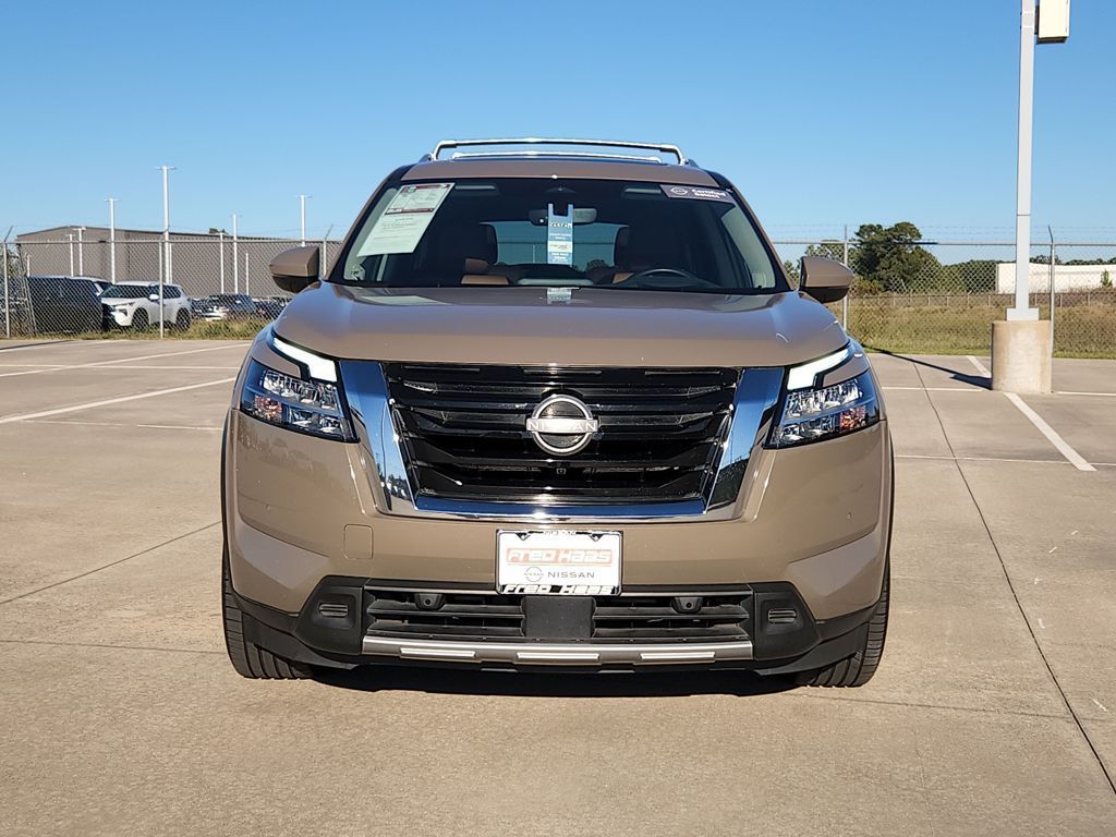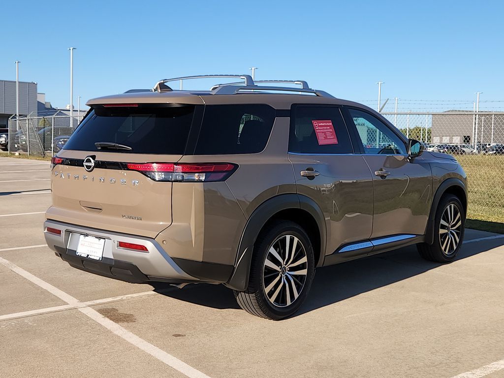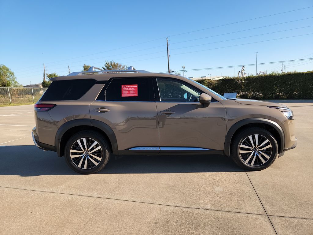 Certified. New Price! CARFAX One-Owner. 20/27 City/Highway MPGBaja Storm 2024 Nissan Pathfinder PlatinumPathfinder Platinum Captains Chair Package, 4D Sport Utility, 3.5L V6 DOHC, 9-Speed Automatic, FWD, Baja Storm, Chestnut w/Semi-Aniline Leather-Appointed Seating Surfaces, 2nd-Row Captain Chairs, 2nd-Row Rear Headrest, Black Splash Guards (Set of 4), Cargo Area Protector, Cargo Net, Cargo Package, Delete Tow Hitch Receiver & Harness, First Aid Kit, Platinum Captain Chairs Package, Tow Delete Package.Certification Program Details:Nissan Certified Select Details:* 84-Point Inspection* Limited Warranty: 12 Months/12,000 Miles (whichever comes first) from date of purchase* Vehicle History Report* Complimentary Service Visit* Roadside Assistance* Car Rental and Trip Interruption Reimbursement* Transferable Warranty* Warranty Deductible: $100Bg Unlimited Miles Powertrain Warranty. See Dealer for warranty details.Tomball, Houston, Harris, Montgomery, Katy, The Woodlands, Spring, 77375. Please call ahead to check availability!!