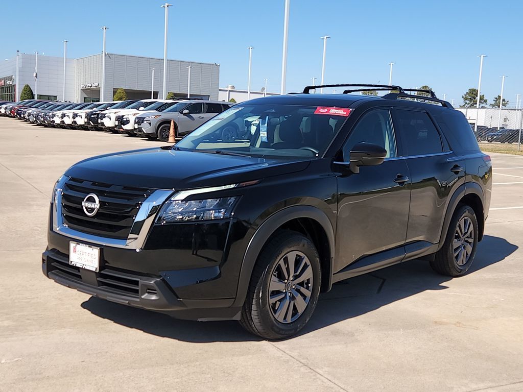 Certified. Recent Arrival! CARFAX One-Owner. Odometer is 2385 miles below market average! Priced below KBB Fair Purchase Price! 20/27 City/Highway MPGClean CARFAX. Super Black 2025 Nissan Pathfinder SVPathfinder SV, Nissan Certified Certified, 4D Sport Utility, 3.5L V6 DOHC, 9-Speed Automatic, FWD, Super Black, Charcoal w/Cloth Seating Surfaces.Nissan Certified Details: * Vehicle History * Roadside Assistance * Transferable Warranty * Warranty Deductible: $100 * 167 Point Inspection * 7 Year/100,000 Mile Limited Warranty, 24/7 Hour Roadside Assistance, Carfax Vehicle History Report, Plus 1 Year Pre-Paid Maintenance Included. Gas Powered Nissan Models Only. * Limited Warranty: 84 Month/100,000 Mile (whichever occurs first)Bg Unlimited Miles Powertrain Warranty. See Dealer for warranty details.Tomball, Houston, Harris, Montgomery, Katy, The Woodlands, Spring, 77375. Please call ahead to check availability!!