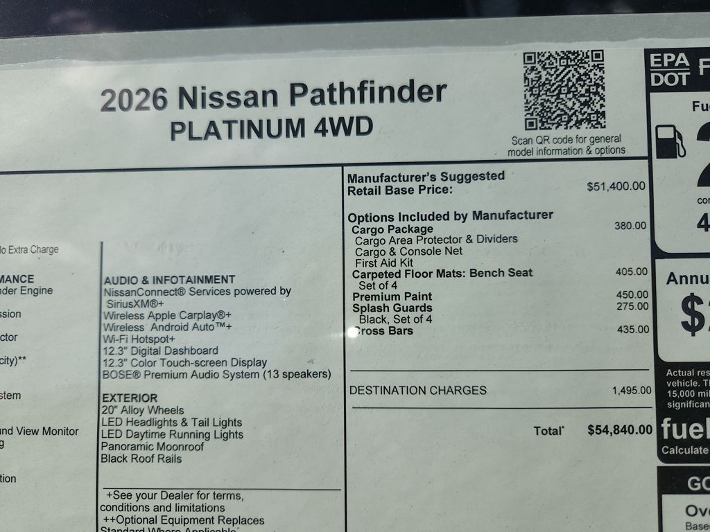 Fred Haas Nissan is the top-rated Nissan dealer in the Greater Houston Area for Google Reviews!4WD, ABS brakes, Active Cruise Control, Alloy wheels, Electronic Stability Control, Front dual zone A/C, Heated door mirrors, Heated front seats, Heated rear seats, Illuminated entry, Low tire pressure warning, Navigation System, Power Liftgate, Power moonroof, Remote keyless entry, Traction control.Fred Haas Nissan has earned the Nissan Award of Excellence and the prestigious Nissan Global Dealer Award 7 times!! Comes standard with Nissan Safety Shield 360 which includes Blind Spot Warning, Lane Departure Warning, Automatic Emergency Braking with Pedestrian Detection, Rea Automatic Braking, Rear Cross-Traffic Control and High Beam Assist. Fred Haas Nissan makes it easy to discover the New Nissan car, SUV or truck you've been longing for! If you're in search of an exceptional buying experience in the Tomball, Spring, Houston, The Woodlands, Hockley, Magnolia, Pinehurst, Conroe, Jersey Village, Humble, Waller, Plantersville, Rose Hill, Hempstead, Prairie View, Katy, Brookshire, Porter, New Caney and Cypress areas, pay a visit to our Nissan dealership today to explore our vast inventory! Whether you’re looking for an Armada, Pathfinder, Murano, Rogue, Kicks, Altima, Sentra, Versa, Leaf, Ariya or the Z, we have it all in Tomball, at Fred Haas Nissan! Our friendly sales team is dedicated to ensuring every stage of the buying process is smooth no matter what your automotive needs are. Customer Cash Offers are not compatible with NMAC special APR or special lease programs. Price Includes:$2000 - Nissan Customer Cash. Exp. 03/02/2026